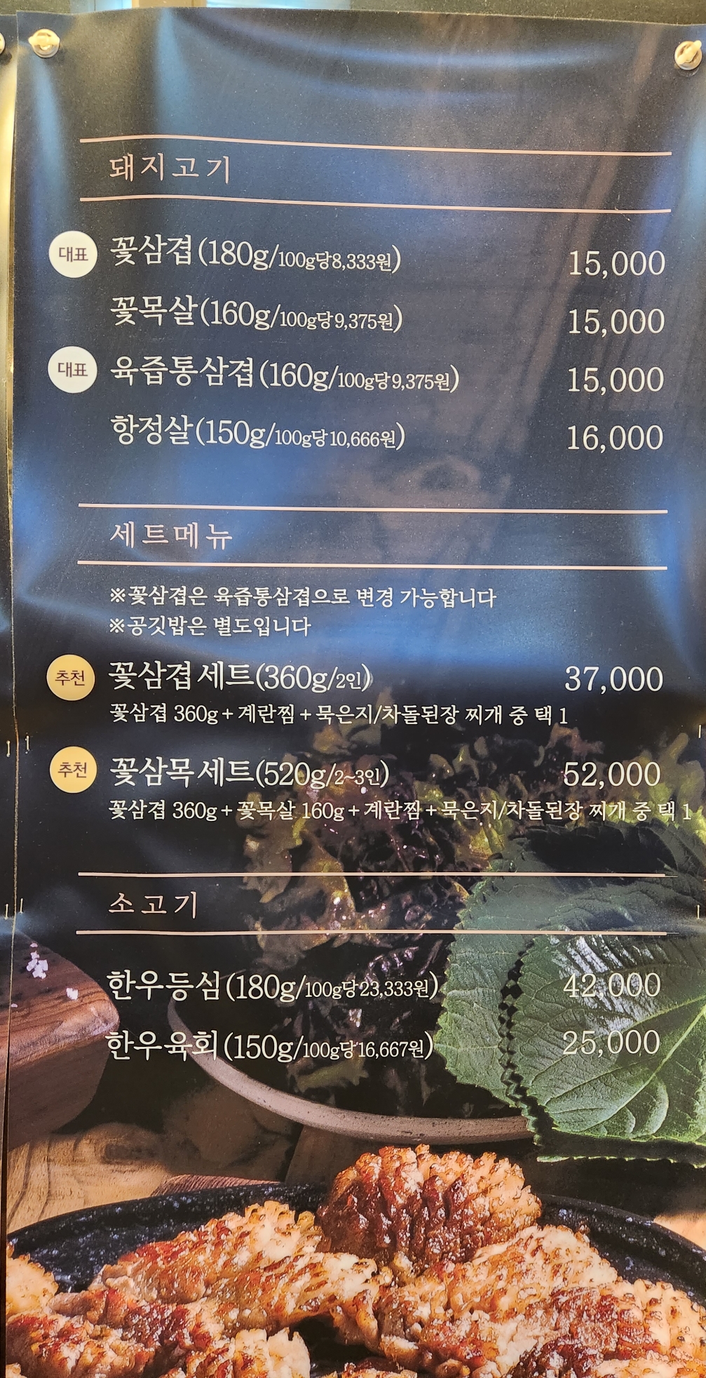 가격 : 꽃삼겹 180g 15,000원