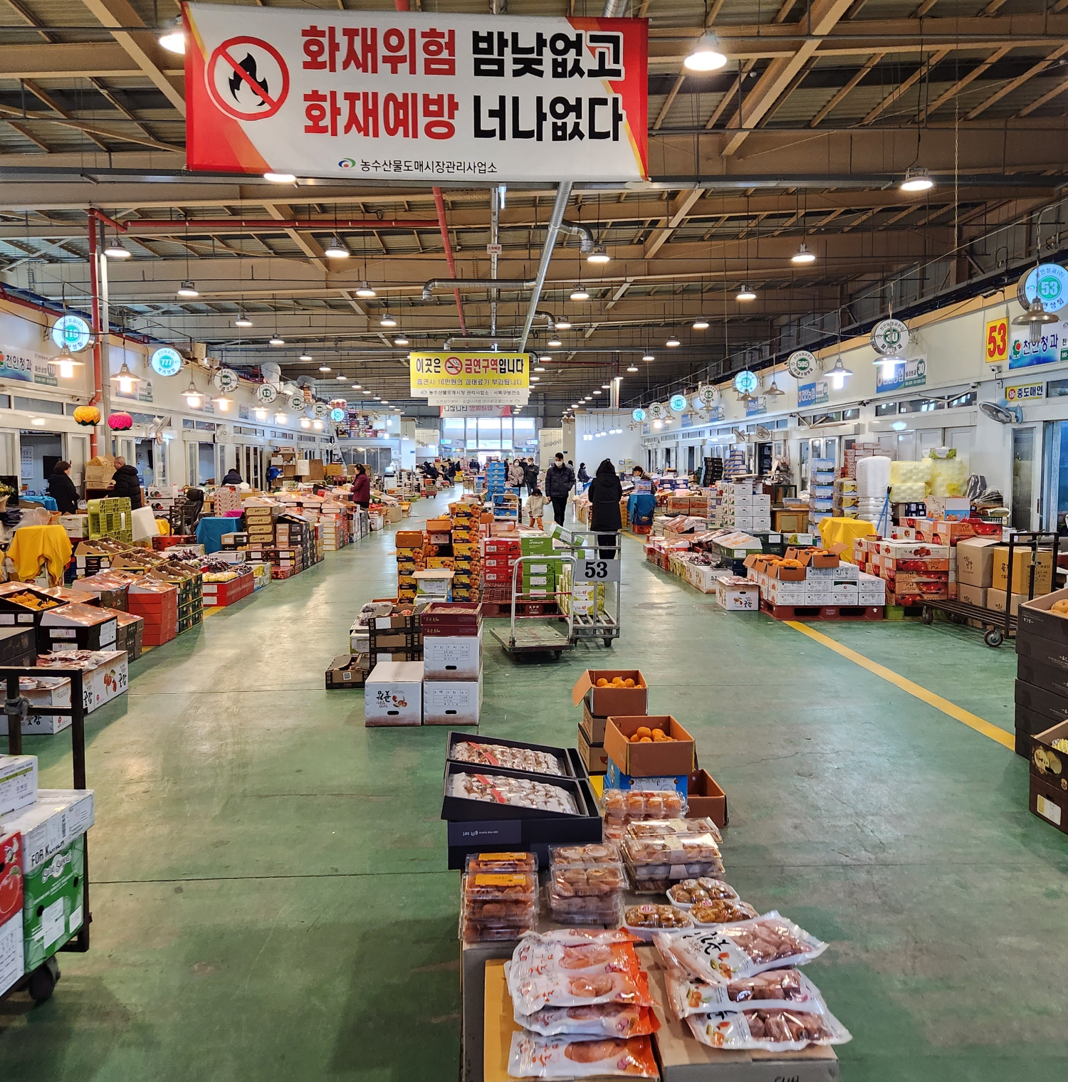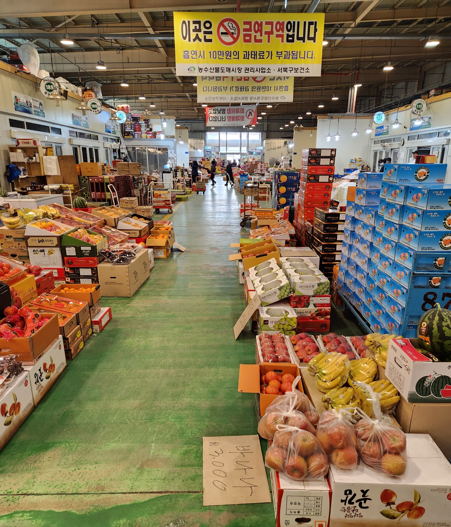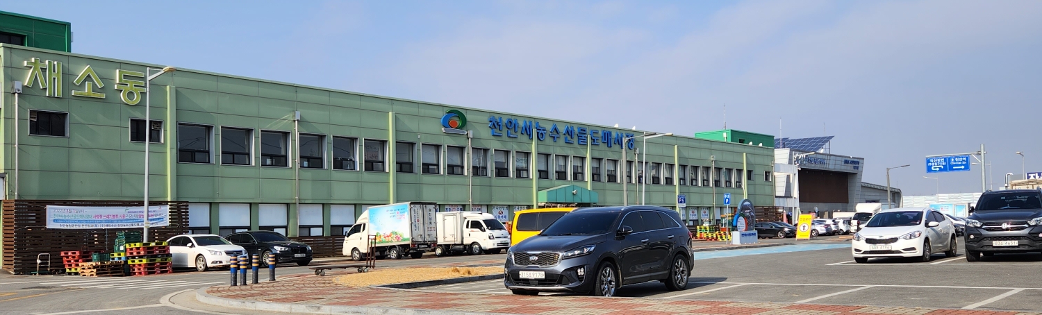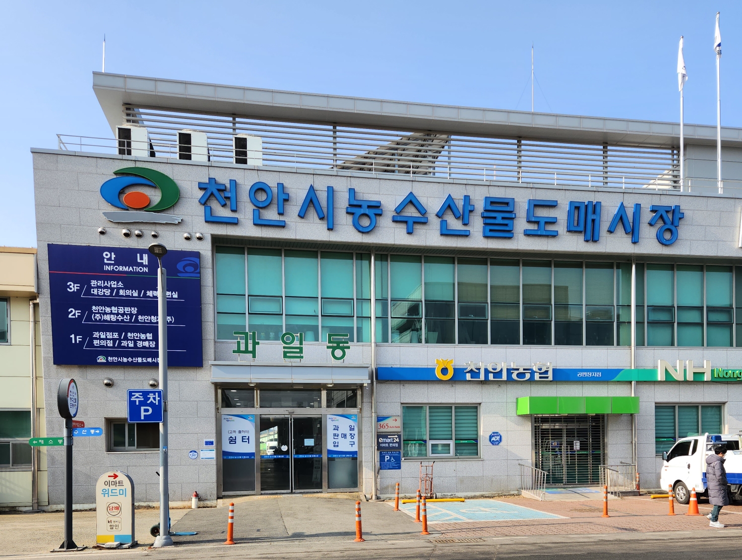 천안시에는 농수산물도매시장에 가면 큰 건물에 과일동, 수산동, 채소동이 있다.