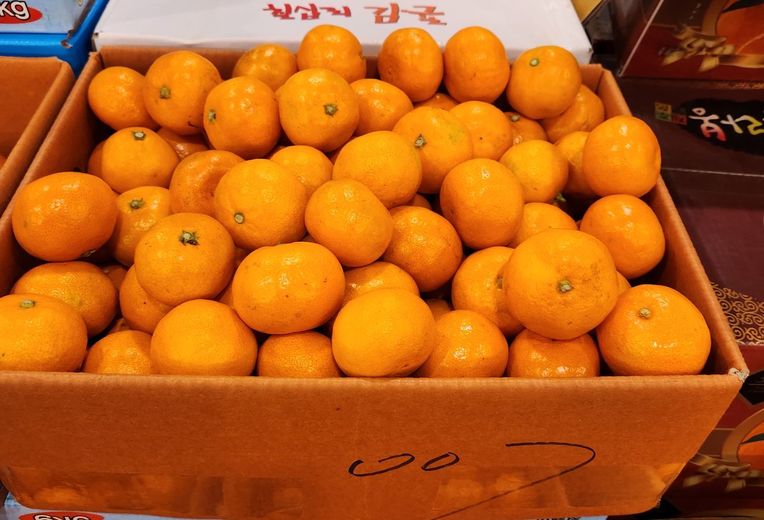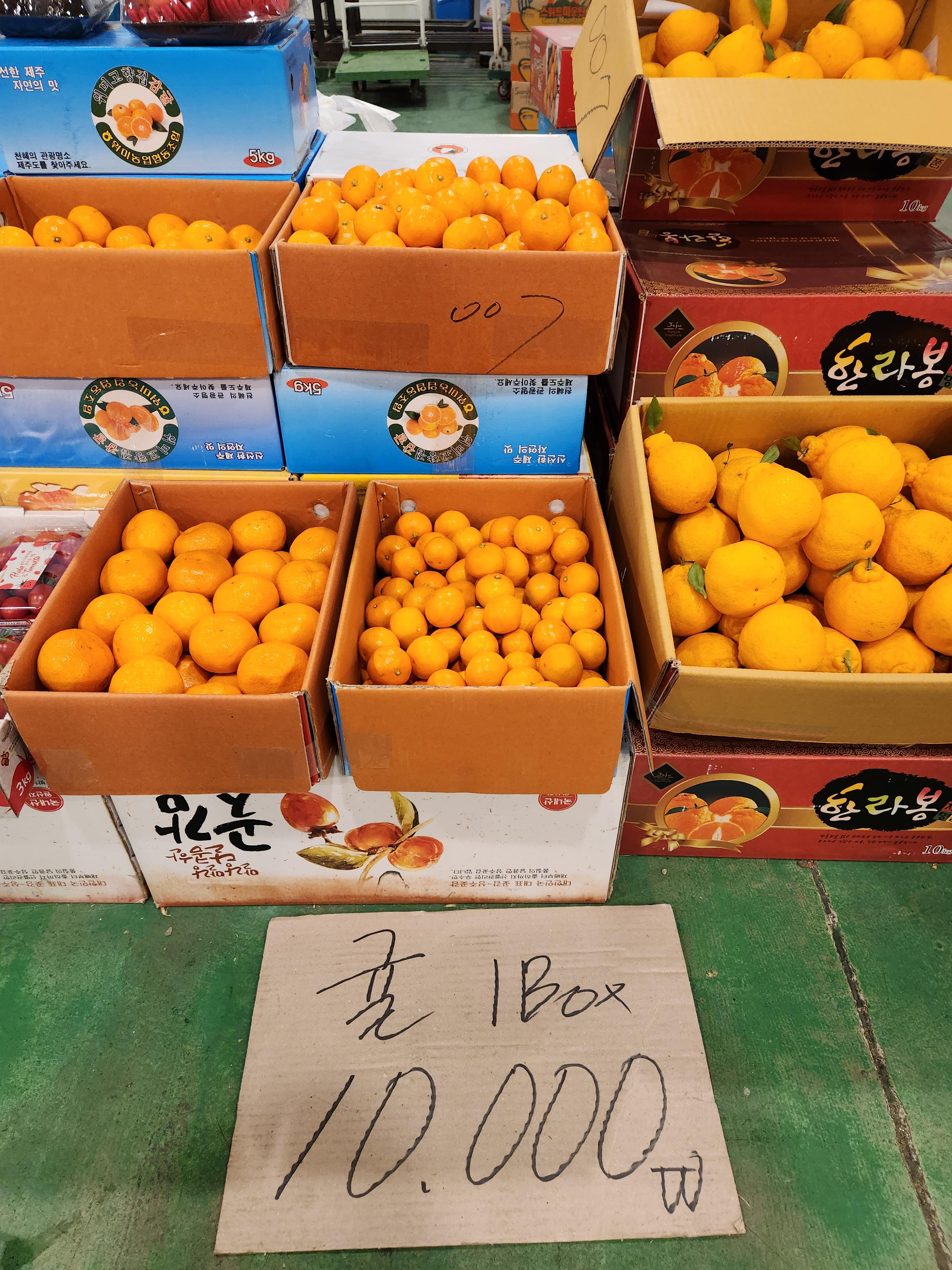 귤은 사진에 보이는 양으로 위의 박스가 15,000원이다.