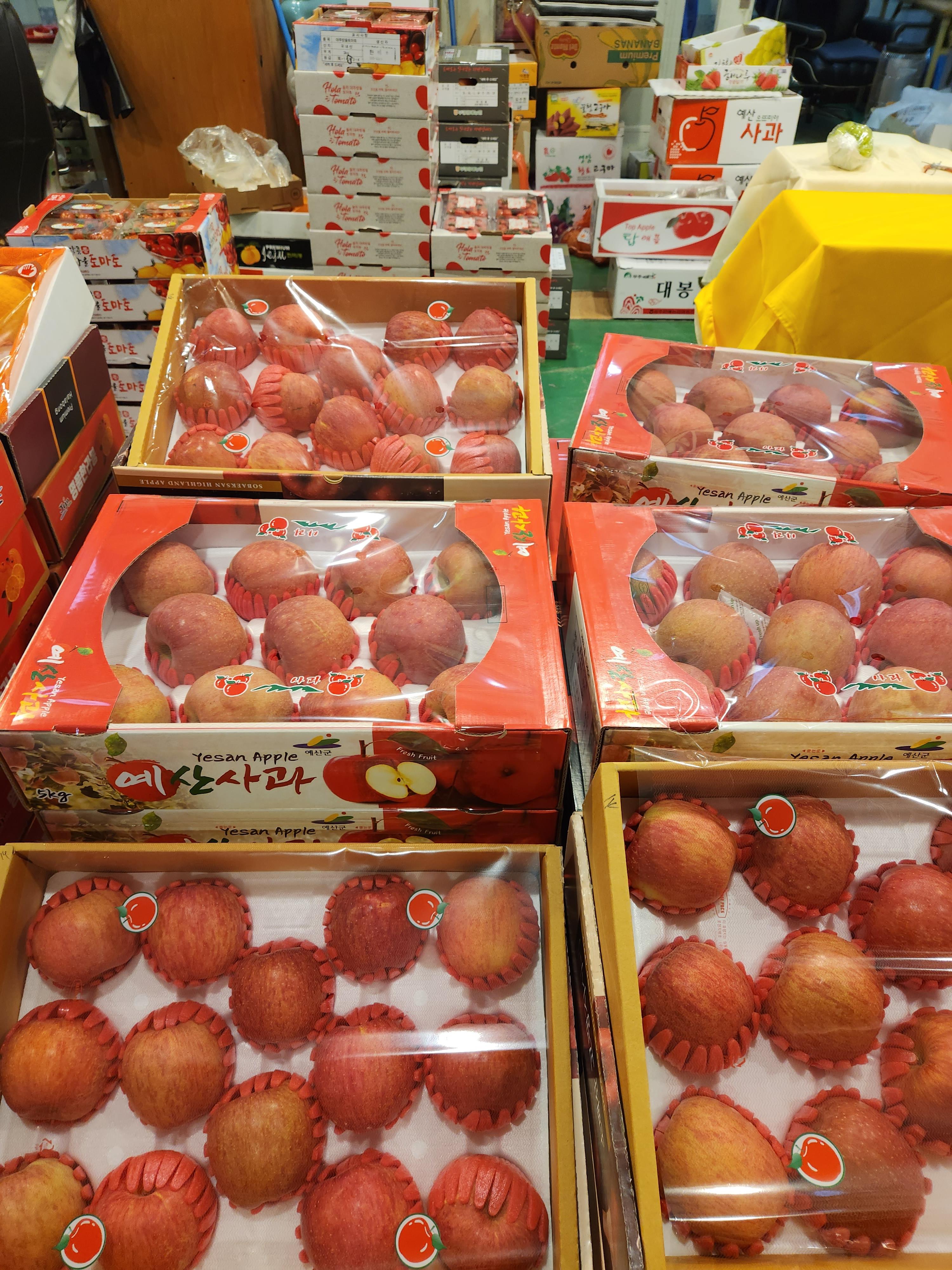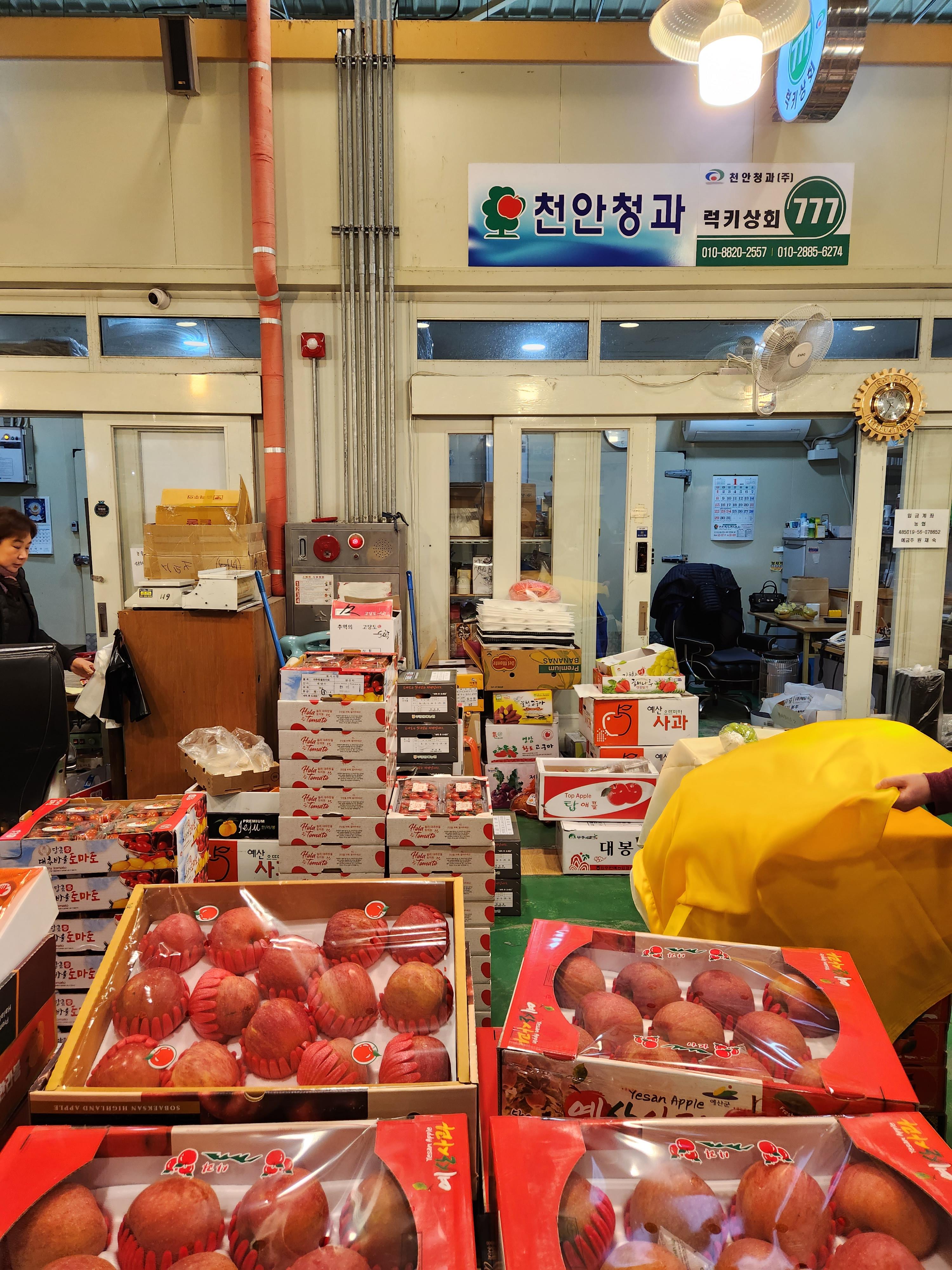 이번에는 천안청과라는 가게에서 사과와 귤을 샀다.