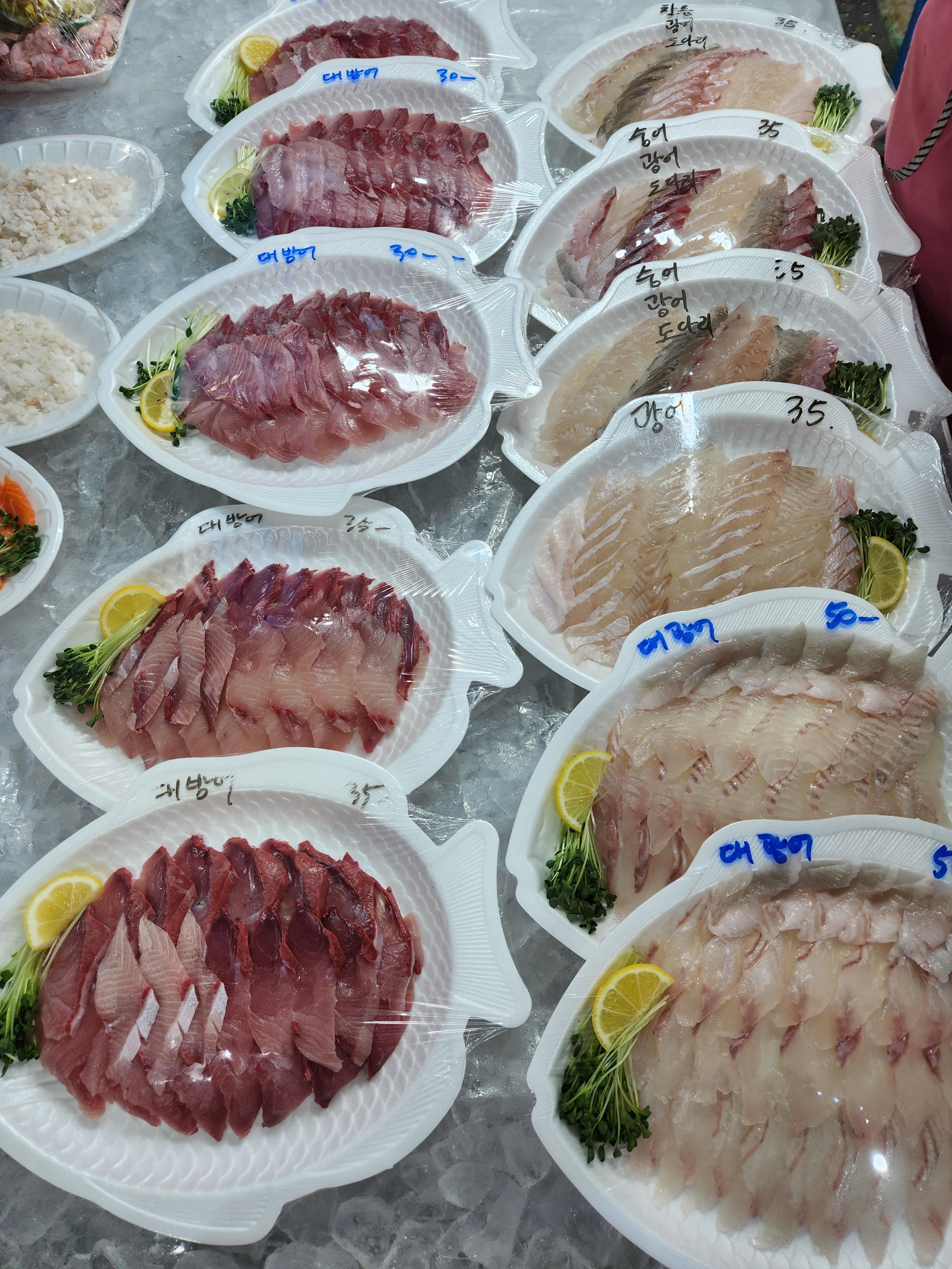 손님도 많아서 인지 왠만큼 오늘 잡은 고기로 회를 떠 져있고 취향에 따라서 고르면 된다.