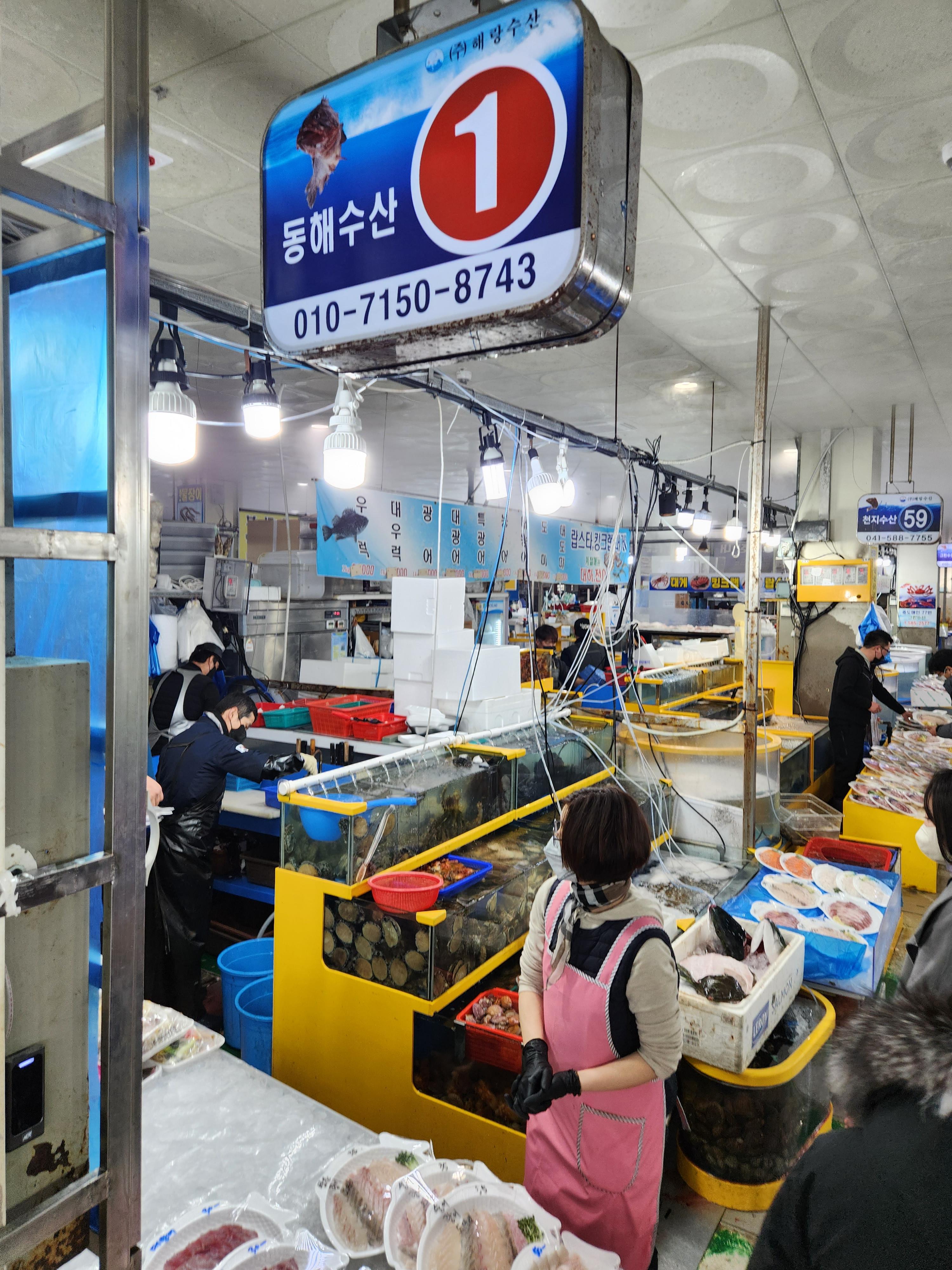 아이들과 같이가서 물고기나 조개 개불등도 한번씩 구경시켜주면서 시장 구경하고 오기에도 좋다.