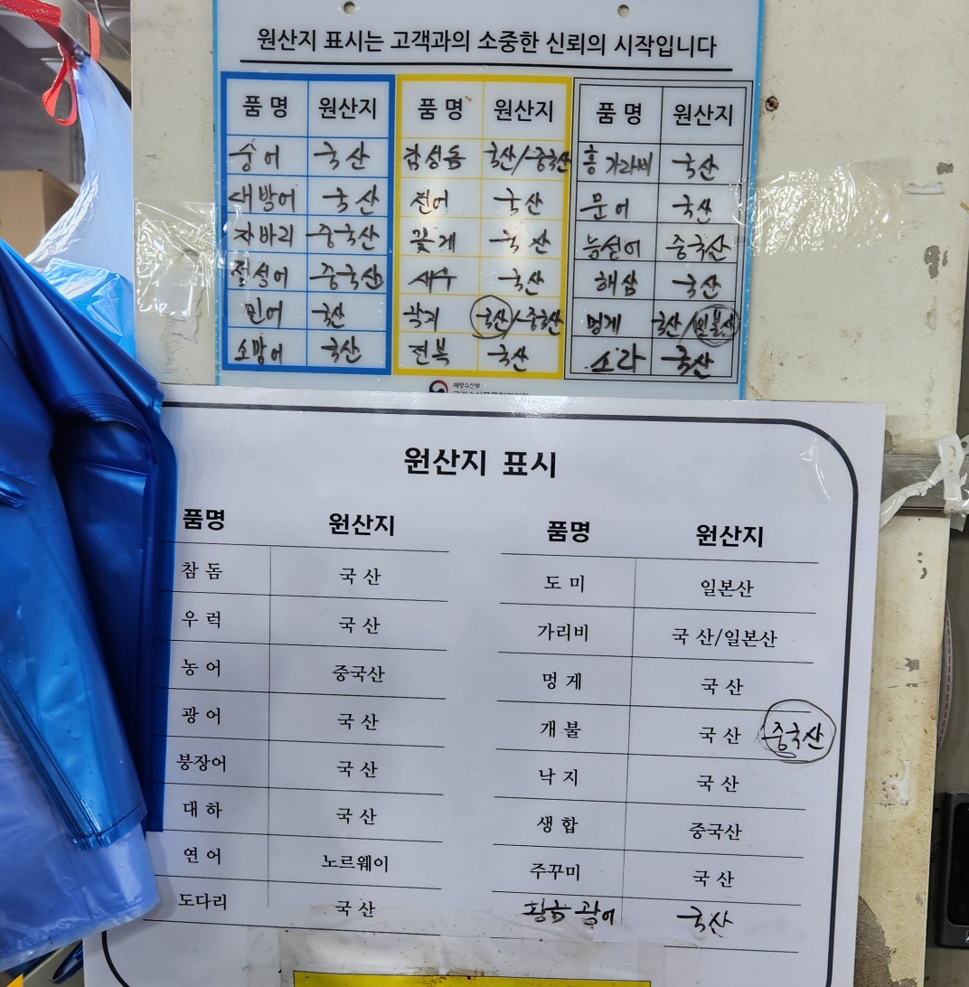 원산지도 벽에 다 붙어있으니 참고하시면 된다.
