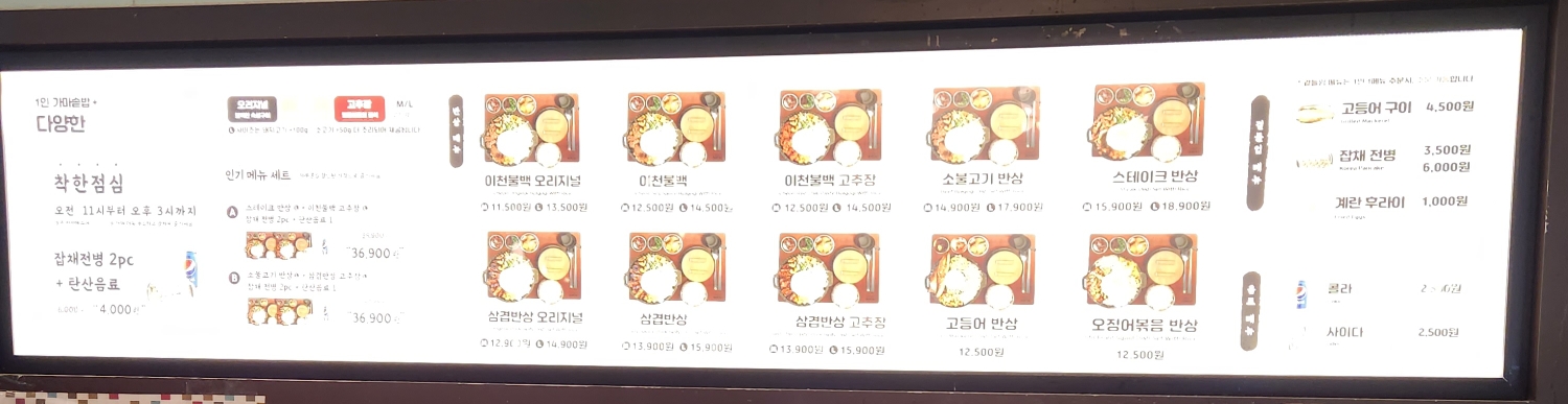 이천반상은 2층에 있는 푸드코트에 있으며 중앙 입구로 들어가서 직진을 계속 하면 보이는 곳에 있다.