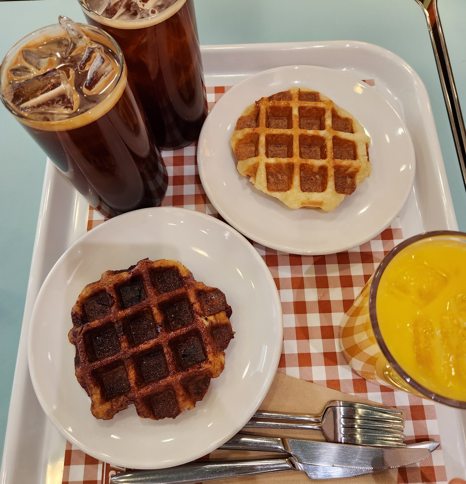 우리도 아이들은 오랜지쥬스를 시켜주고 커피와 와플을 하나씩 먹고 갔다.