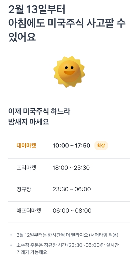 타 증권사에서는 이미 사용중이겠지만 2/13일부터 토스증권에서도 미국증시 데이마켓 이용가능하다고 하니 참고하면 된다.