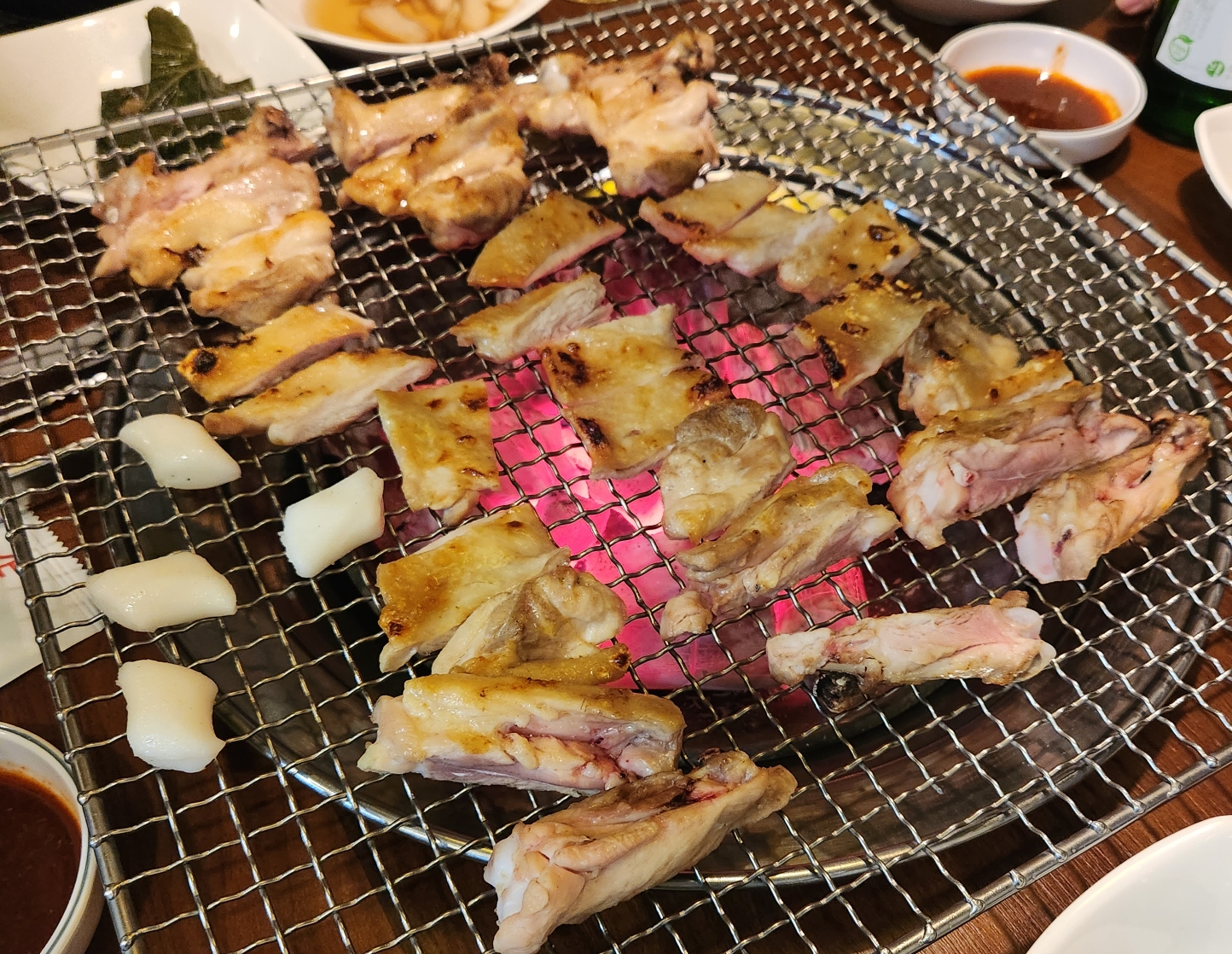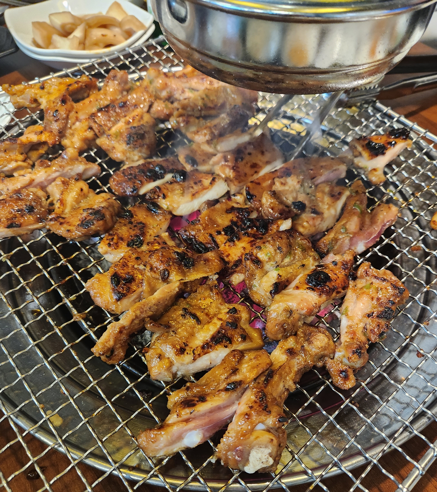 좌석에서 터치패널로 메뉴를 시키면 별도 화로에서 닭갈비가 구워져서 나온다.