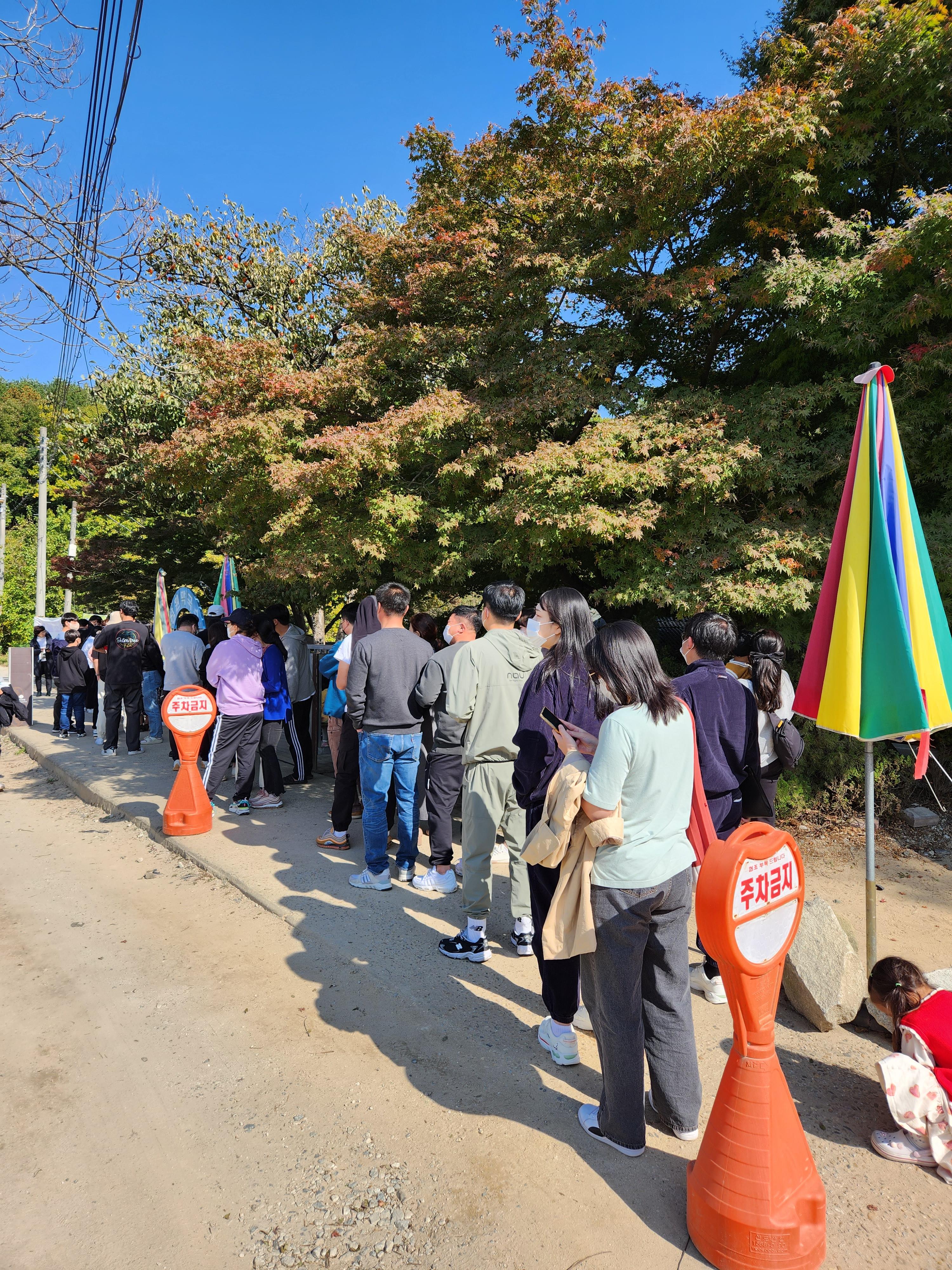 멀리서 봤을 때는 줄이 안 보였는데 구드래나루터 선착장에 차를 세워두고 걸어서 점점 장원막국수 가게가 보이는 순간 헉 엄청난 줄에 놀라서 가야 되나 말아야 되나 망설임🤔