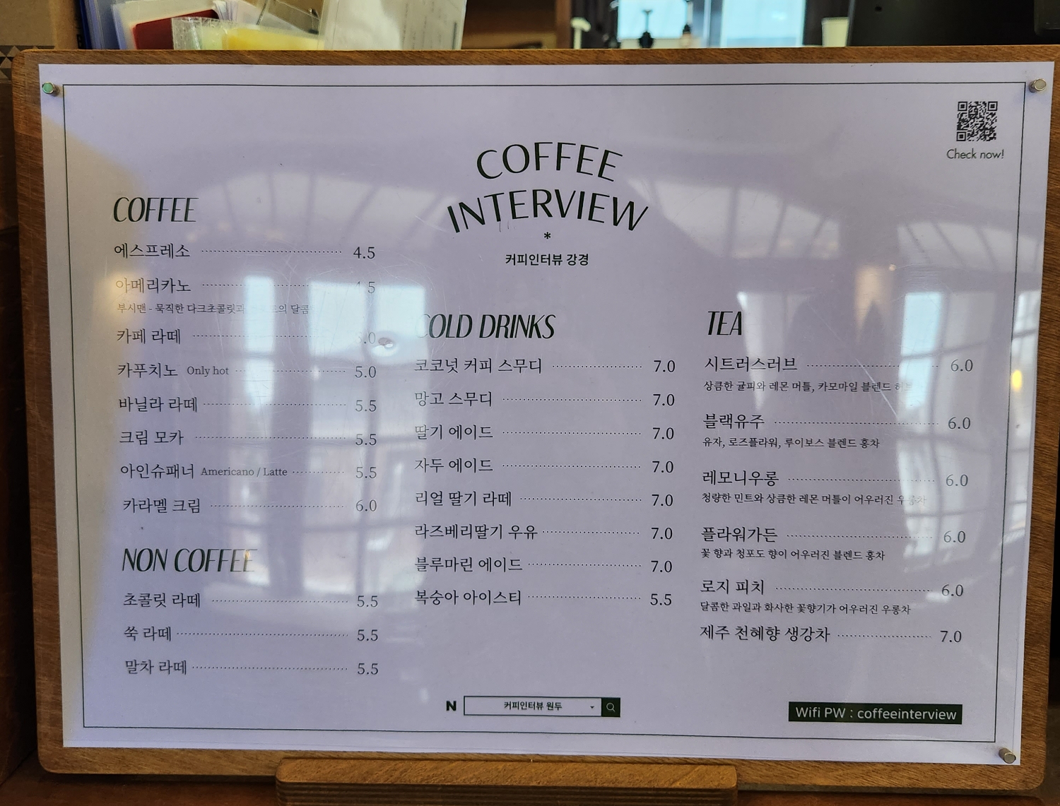 네이버로 검색하면 해당이름으로는 안나오고 커피인터뷰 강경으로 검색하면 나온다.
