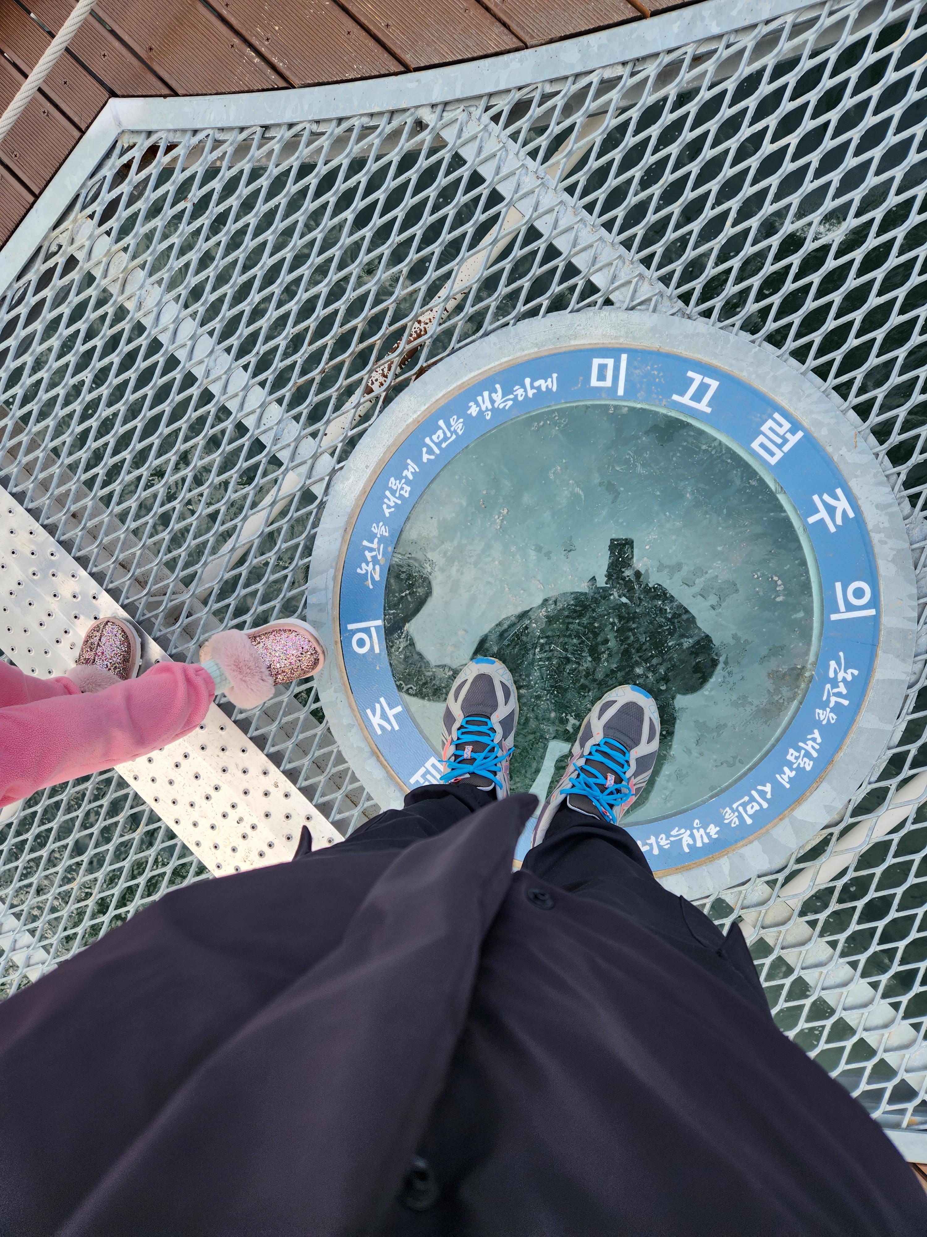 투명한 동그란 유리 위에 지나가진 않았는데 그곳이 또 사진찍는 스팟이긴 했다. 사진 찍으려고 몇번 시도는 했지만 무섭긴 무서웠다. 😨