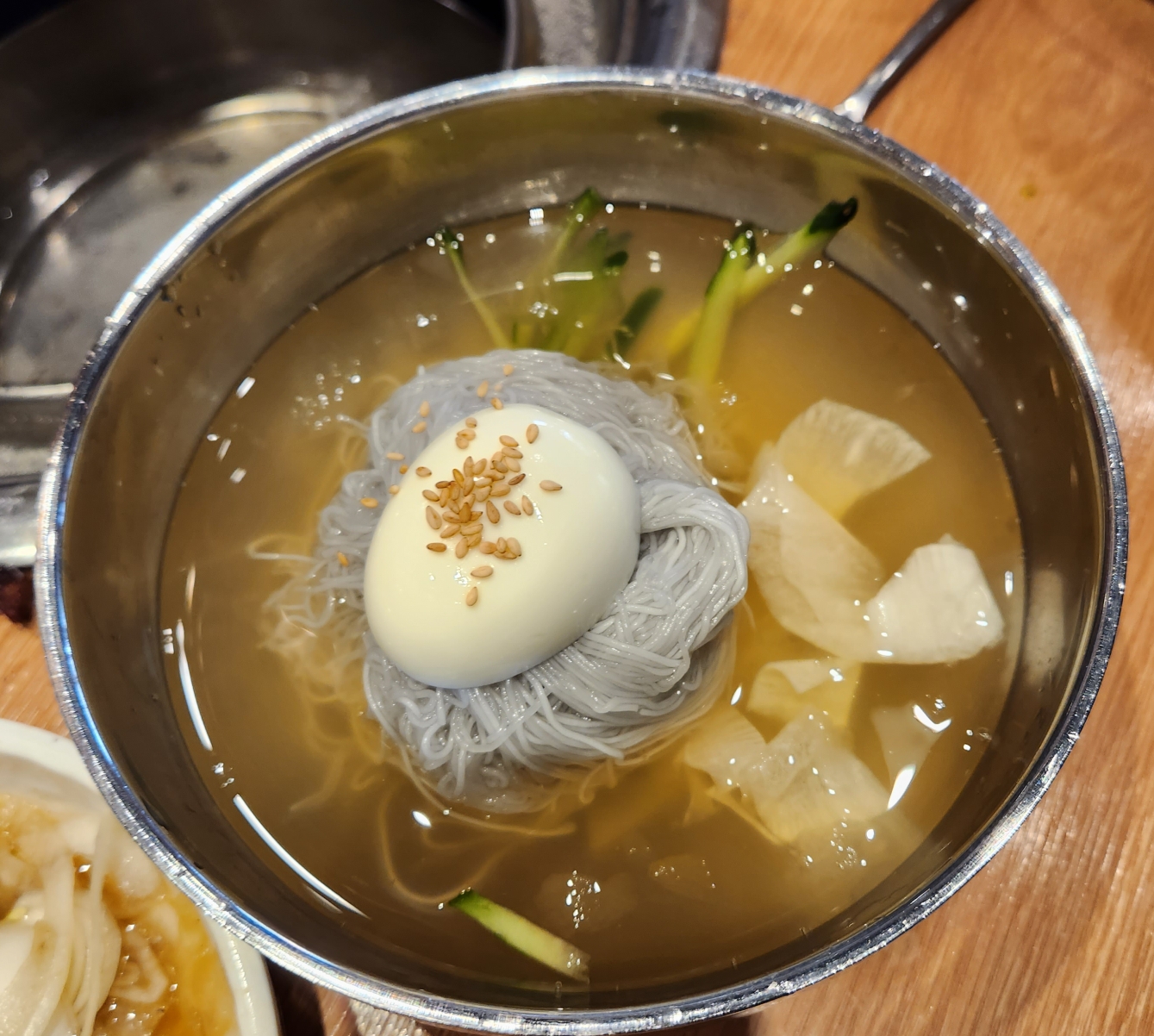 하지만 육즙이 가득한 두터운 소고기를 먹으면서 양껏 먹는다면 시원한 물냉면과 고기 한점 같이 먹는 것도 나쁘지 않다.
