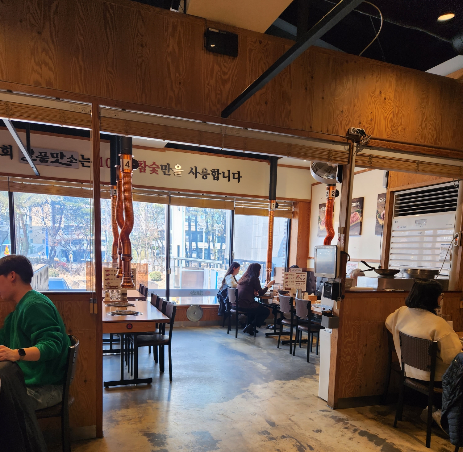 넓적한 통판으로 두꺼운 갈비살이 나오는데 숯불에 구워서 한입 딱 먹으면 육즙이 팡팡 나오면서 너무너무 맛있다.