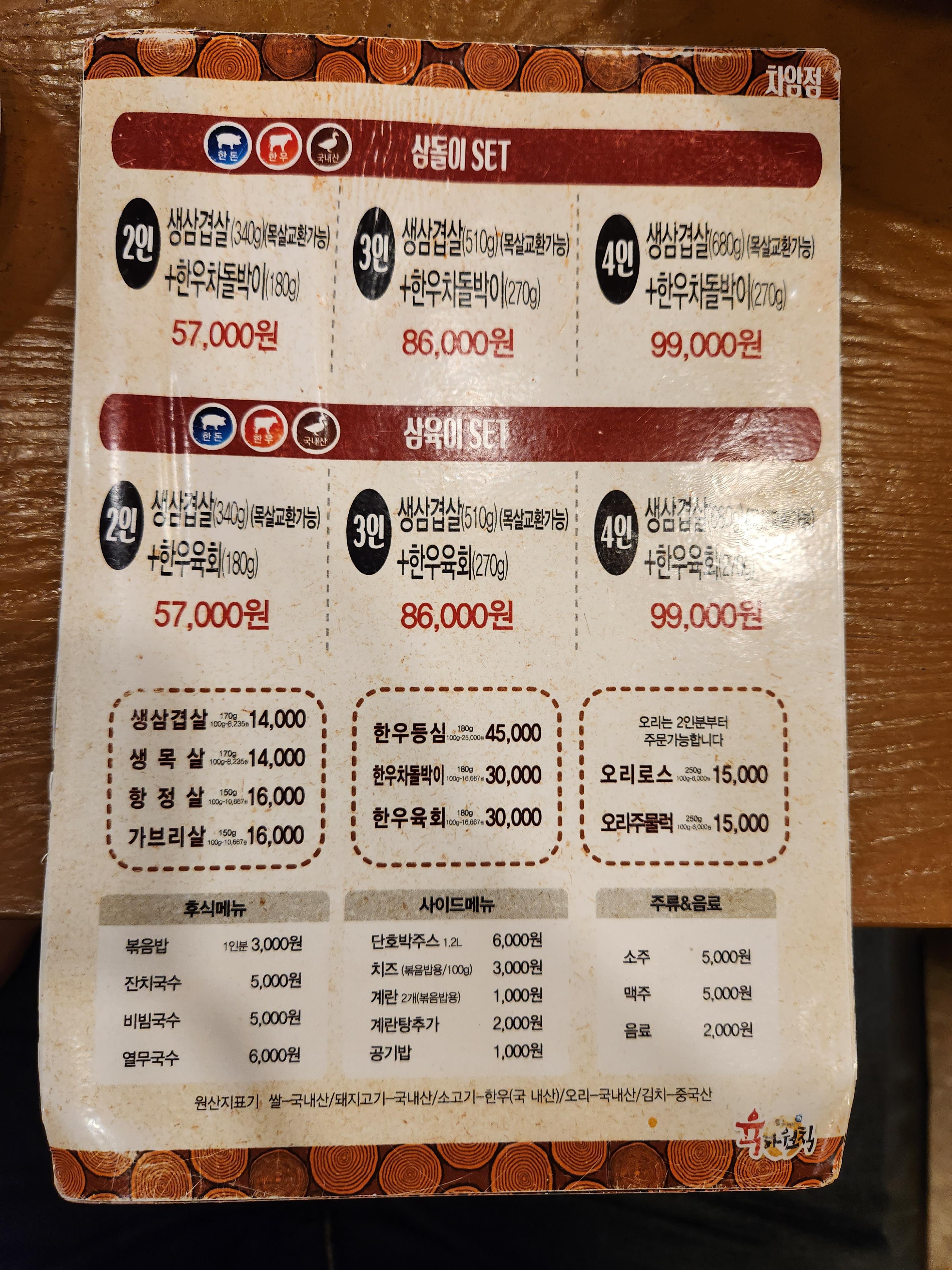 가격 : 생삼겹살 680g, 한우차돌박이 270g 99,000원 (4인용)