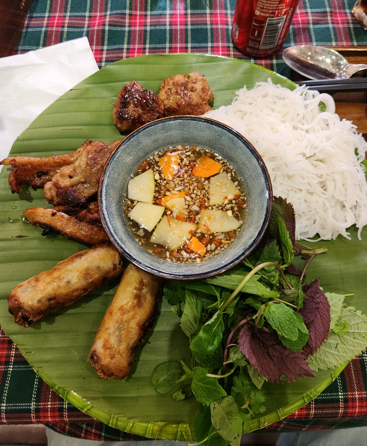 분짜와 보통은 수박주스를 먹는 편인데 콜라가 더 당겨서 시켜 먹어봤는데 베트남에서 먹는 콜라는 대부분 한국에서보다 훨씬 새것이라도 김이 좀 빠져있는 느낌이었는데 캔콜라라서 그런지 시원하고 괜찮았다.