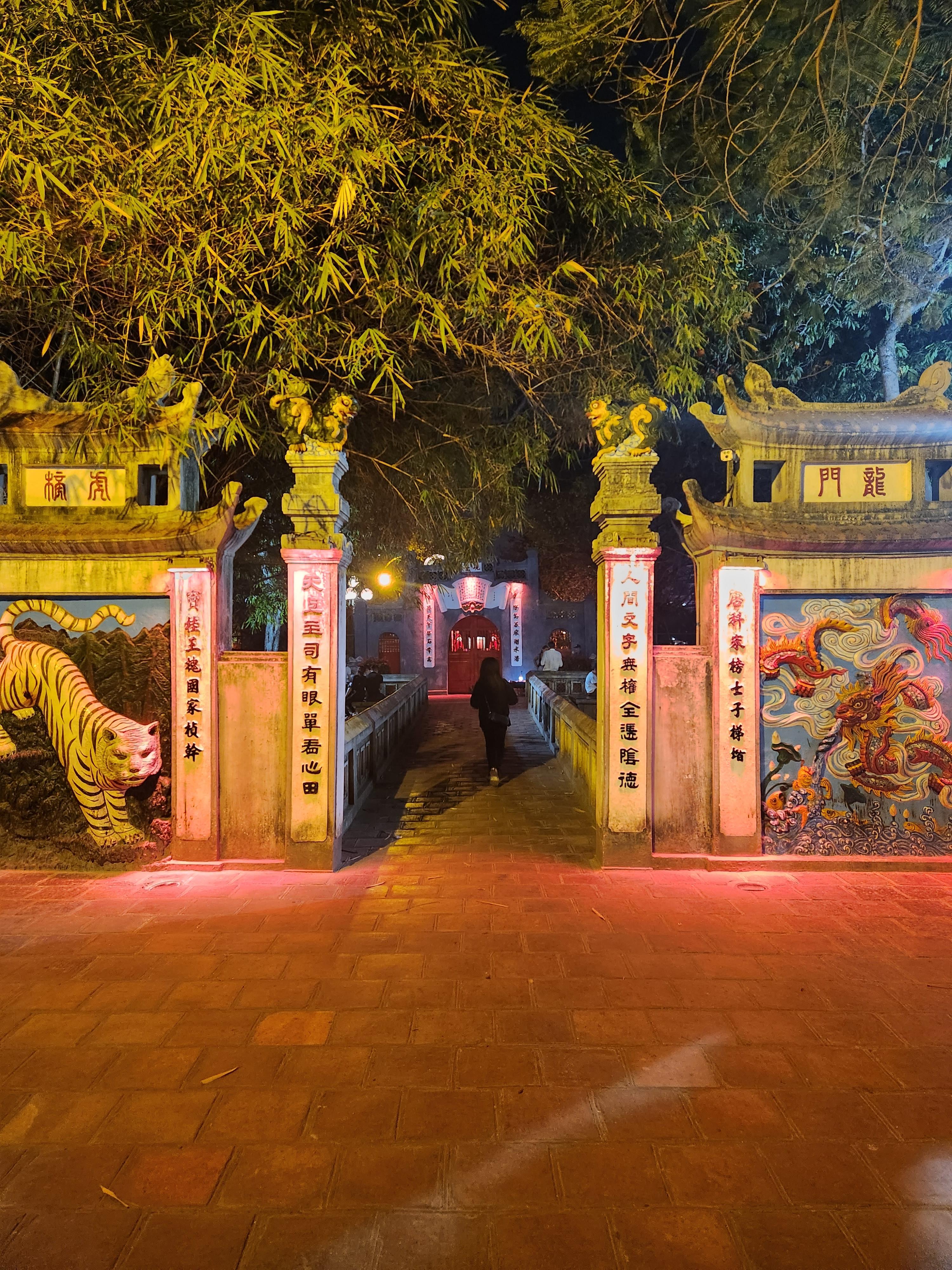 호안끼엠 호수 안쪽에도 응옥썬 사당과 다리에는 붉은색 조명이 펼쳐져 있어서 이쁘게 해 놓았다.