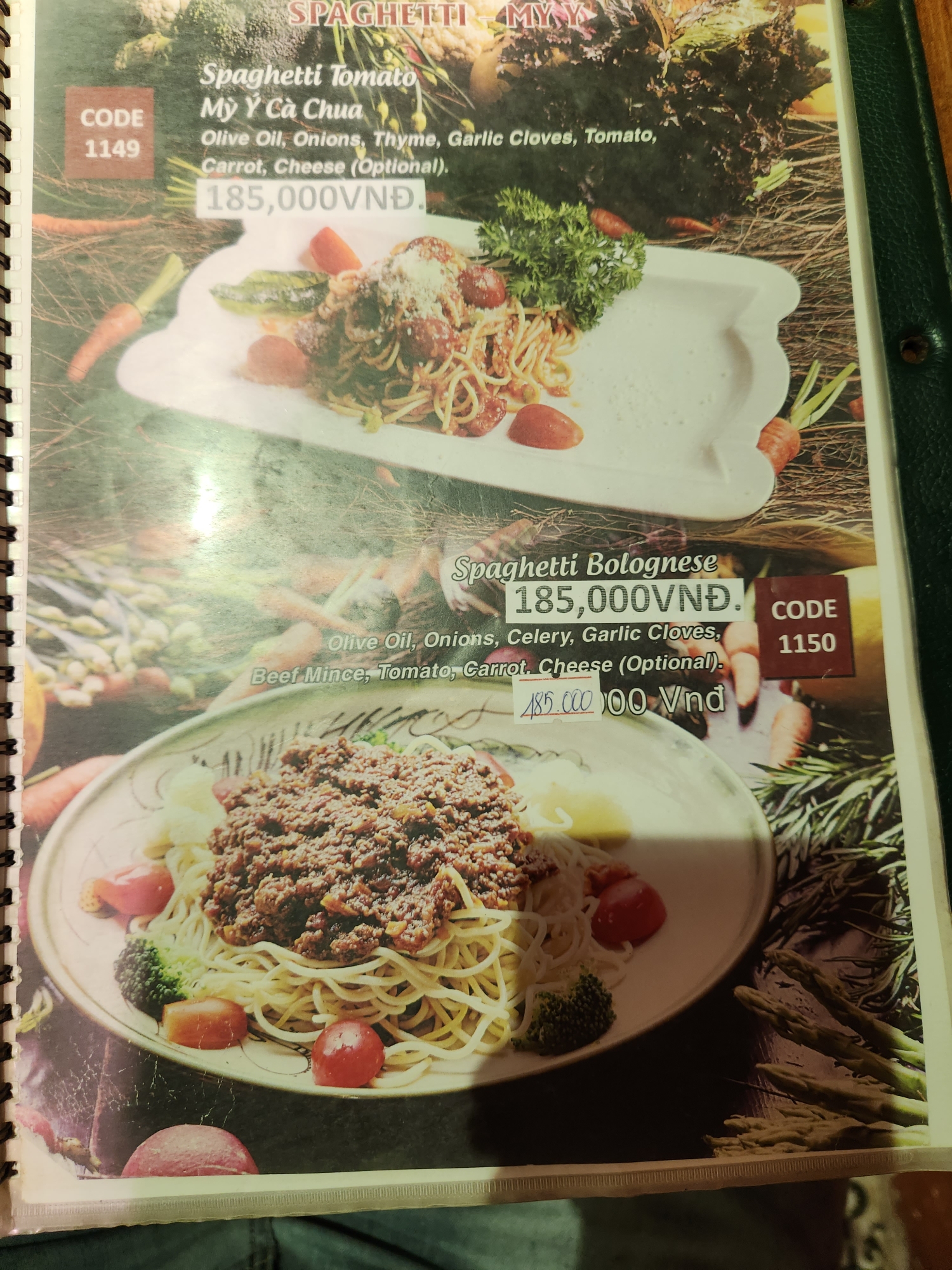 포꾸온을 하나 시키려니 배고픈 상태라 부족할 것 같은 느낌으로 베트남 음식 말고 이번엔 스파게티도 한번 먹고 싶어서 메뉴를 보다가 주문해 보았다.