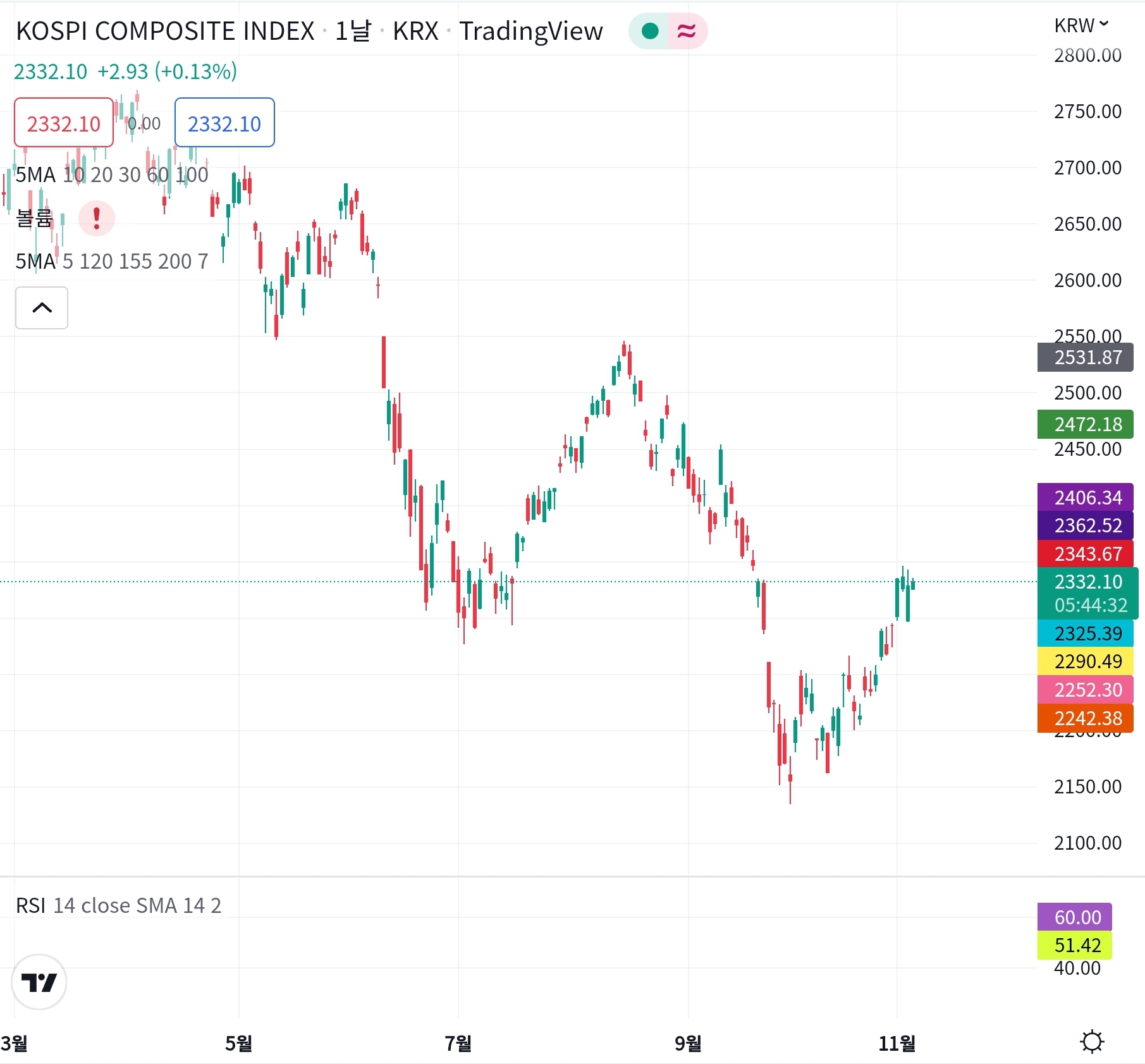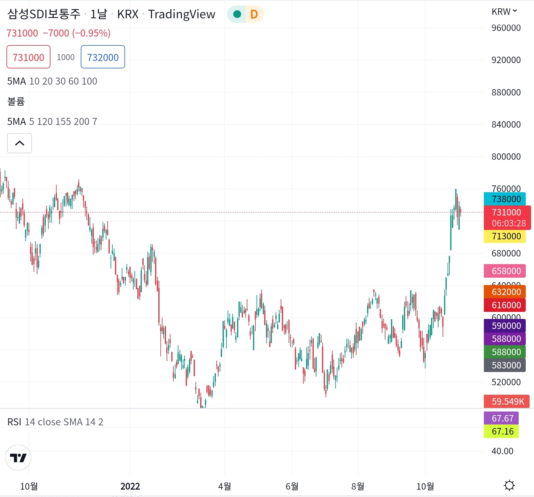그에 반해 미장보다 코스피 코스닥 국내 주식은 의외로 선방을 잘해주고 있다. 반도체 대표주인 삼성전자도 선방 중이고 언제 떨어질지 모르게 불안하게 있는 것 같지만, 2차전 지주도 지속 강세로 많이 치고 올라간 것 같고 (삼성 SDI, LG에너지솔루션, SK이노베이션 등) 단기간에 또 많이 올라서 잠깐은 쉬어가지 않을까 해 보인다.
