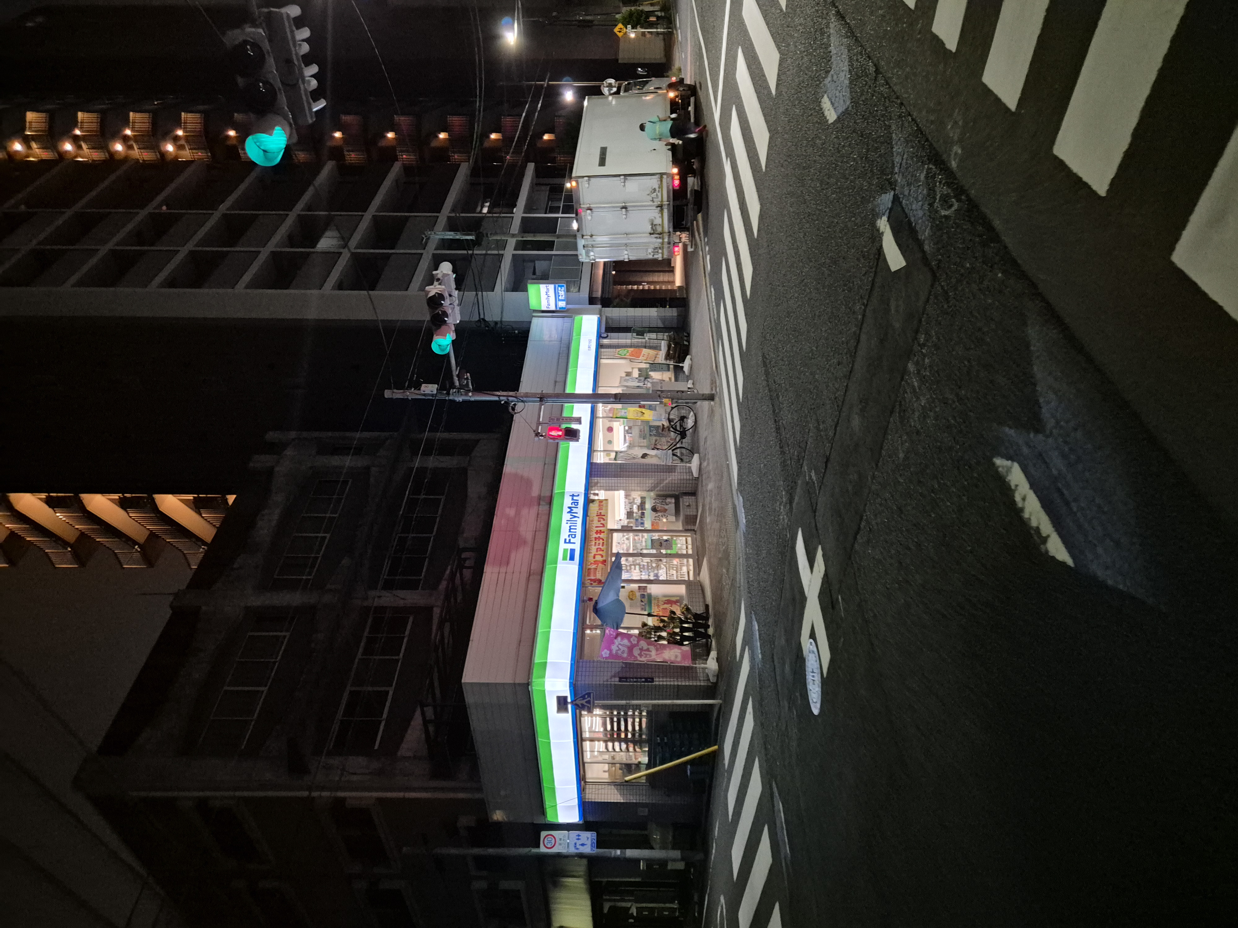 이곳은 스미다구 밤거리의 패밀리마트이다. 늦은 시간에도 환하게 불을 밝히고 있다. 숙소로 돌아가는 길에 간단한 음료를 사러 들르기 좋다. 일본 밤 풍경의 한 장면이다.