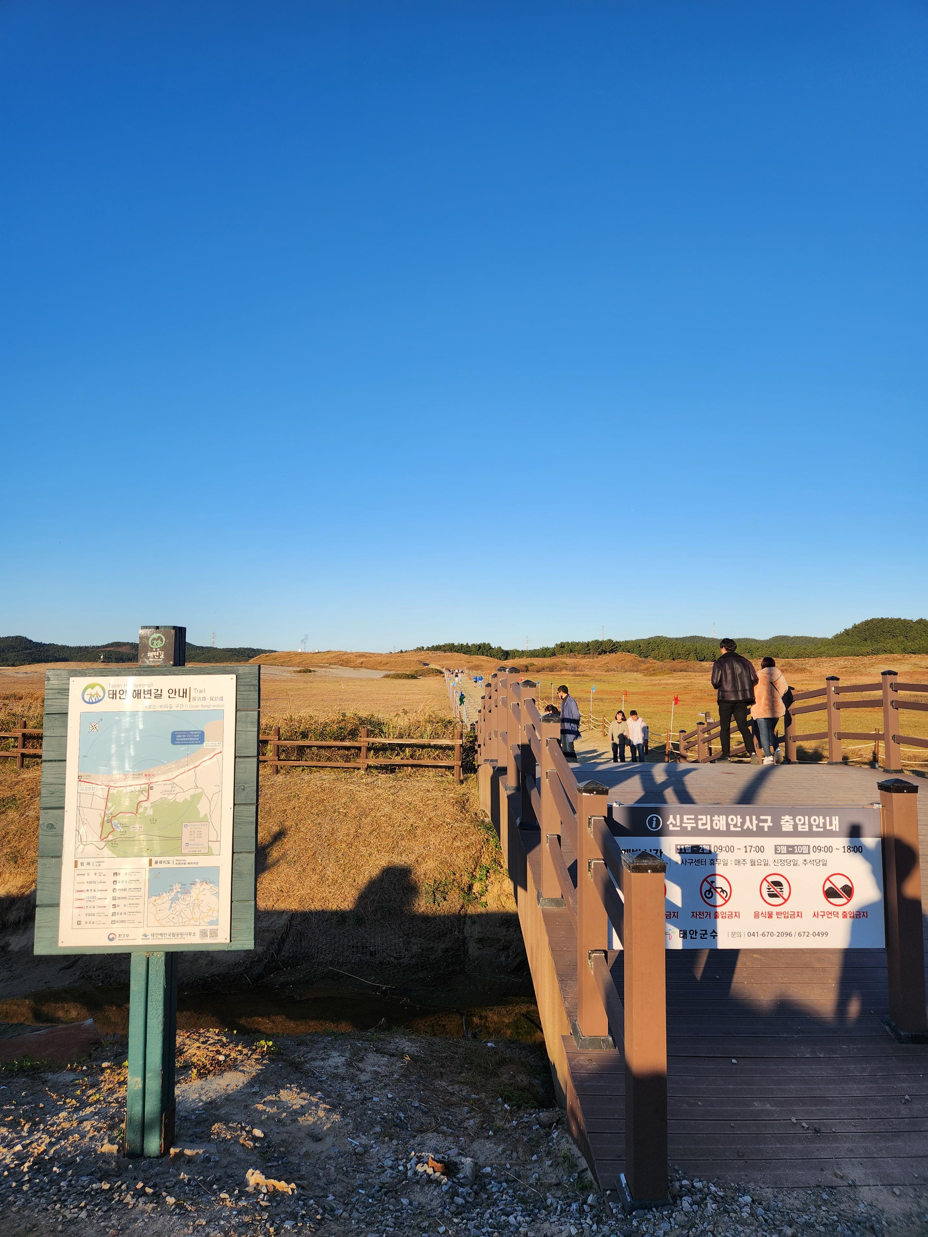 주변에 펜션과 캠핑장도 많고 신두리 해안사구는 사막을 구경하며 사막 사이의 둘레길을 걸으며 감상하며 사진도 찍으며 관광하는 데에는 반나절로도 아마 부족한 시간이 될 것 같다.