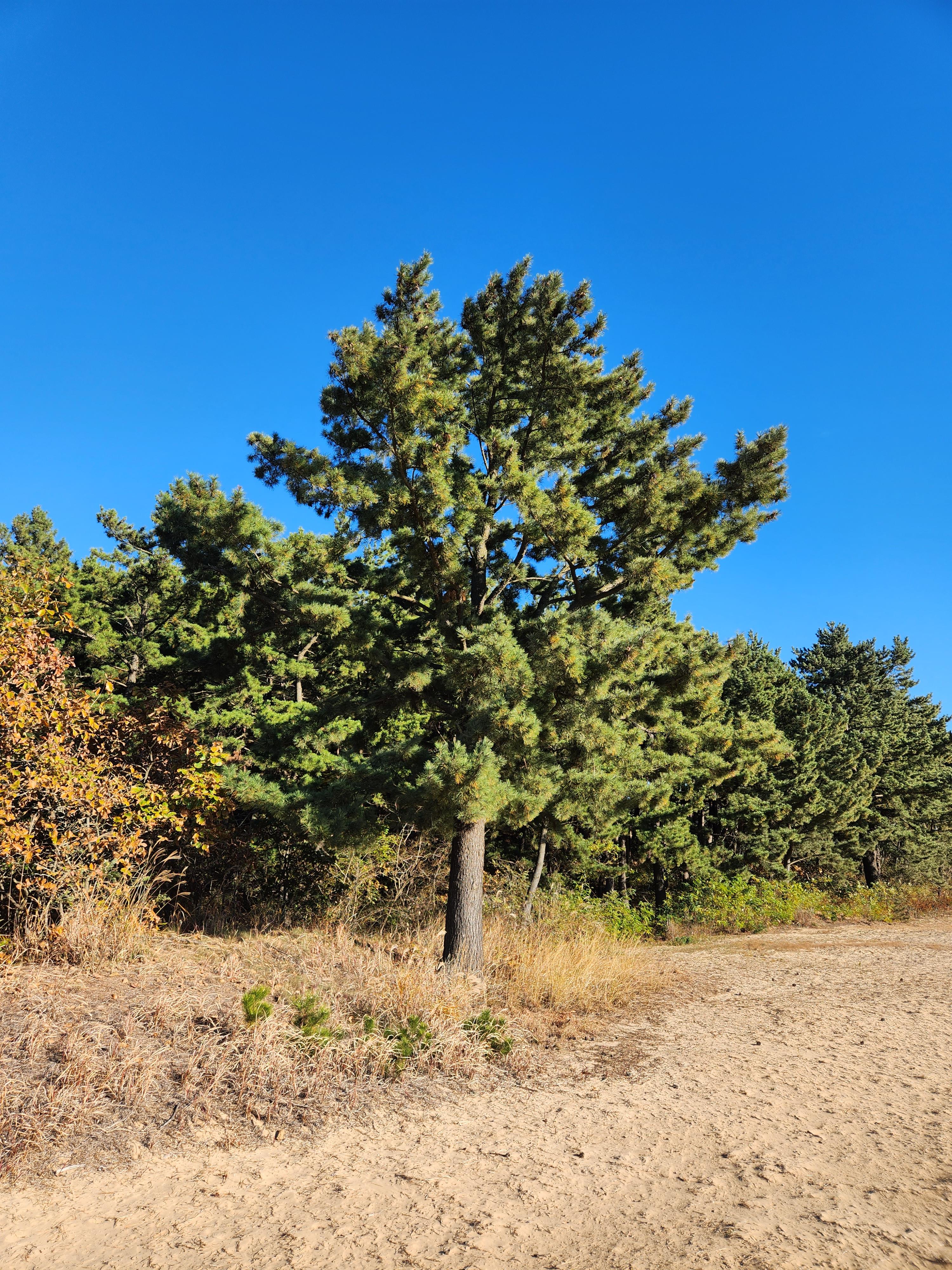 두웅습지를 가는 쪽 입구에서 모래 언덕 쪽에 가는 첫길에 있는 첫 번째 소나무가 그 당시 모래 벌판에서 수십그루의 나무는 죽었지만 살아남아 뒤쪽의 소나무 숲을 만들어준 몇 안되는 1세대 시조 나무? 같은 종자라고 들었다. 😮