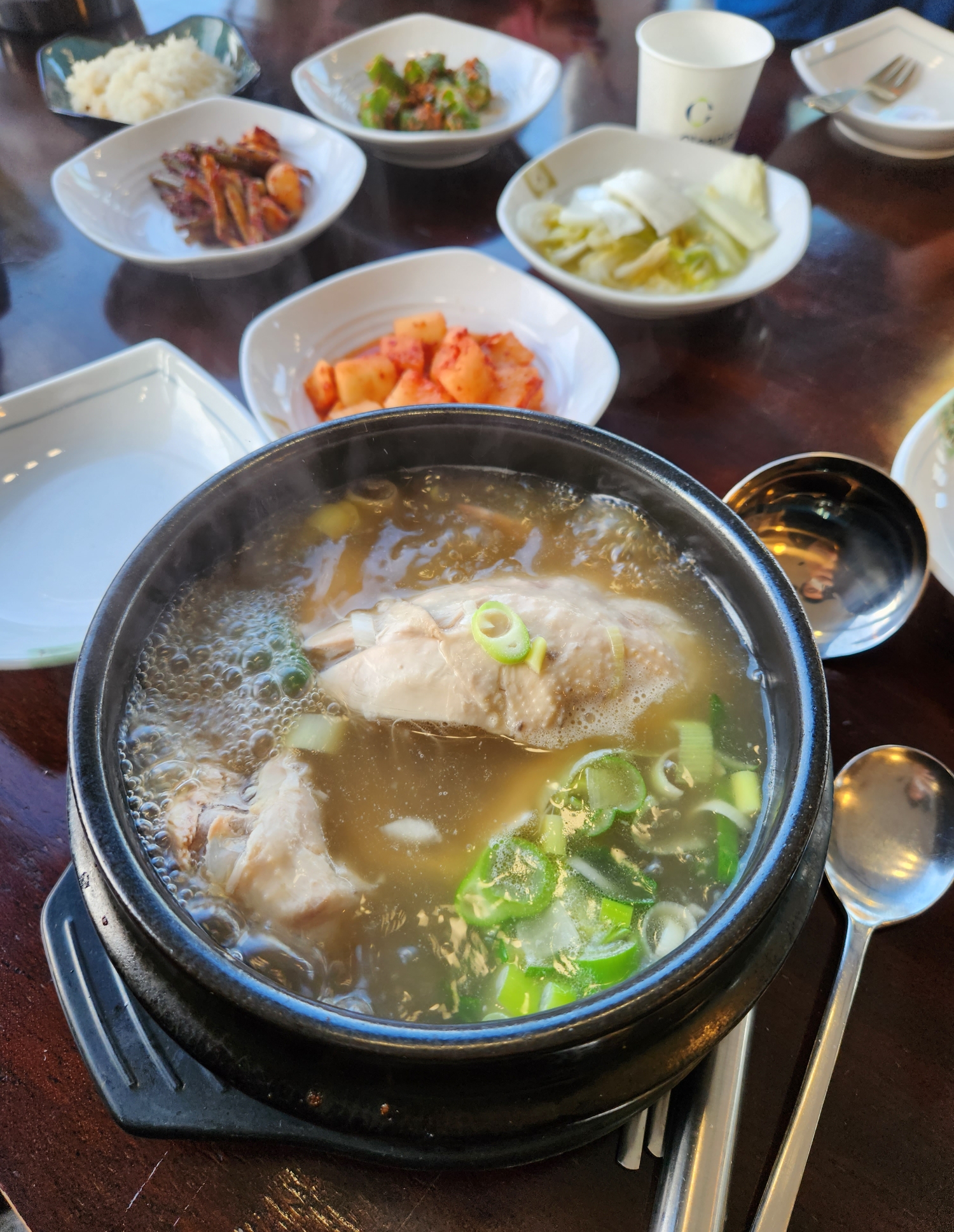 기본 삼계탕이라서 개인 취향인 한방 맛은 안 났지만 국물이 맑고 건강하게 육수를 뽑은 맛으로 괜찮았다.