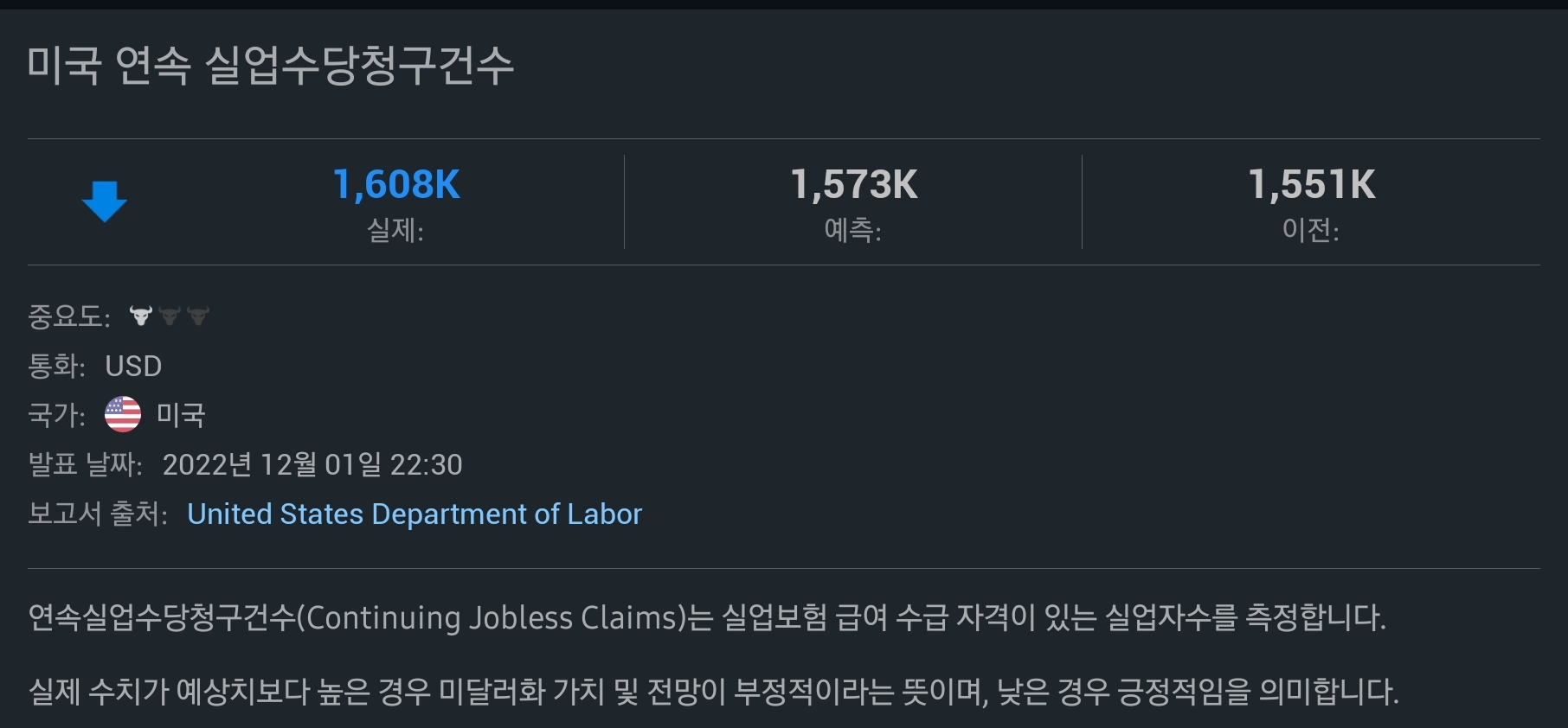 221201 목 미국증시 초반 시황 [미국 실업수당청구 건수, 미국 ISM 제조업 구매관리자 지수]