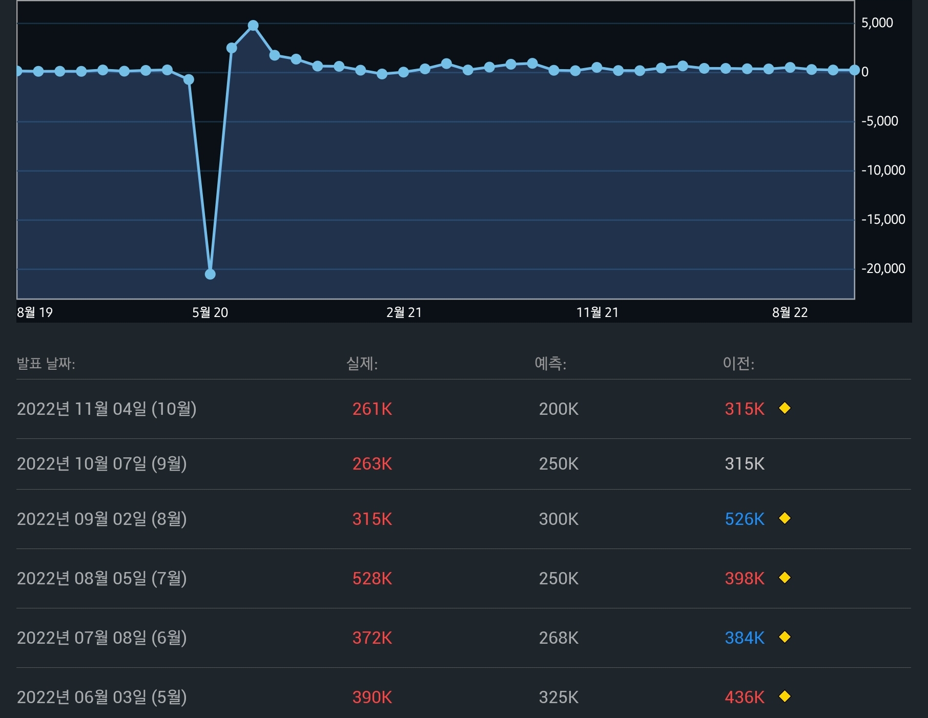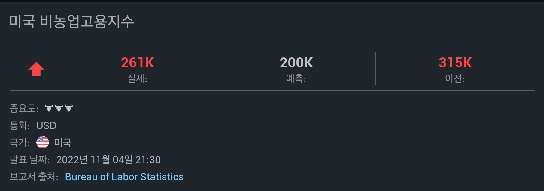 조금 전에 미국 비농업 고용지수가 발표가 되면서 나스닥 선물 지수가 순간 2% 정도 빠졌으나 다시금 회복하고 있다. 신규 고용자 수가 예상치보다 증가했다는 것은 결국 미국 경제가 탄탄하다, 즉, 금리 인상 더 해서 인플레 잡는 데에 더 도움되도록 움직여도 경기 침체에는 튼튼할 것이다.라고 해석할 수 있기 때문에 예상치 상회라는 발표 결과에 맞춰 2% 정도 급락하여 흔들어주었다.