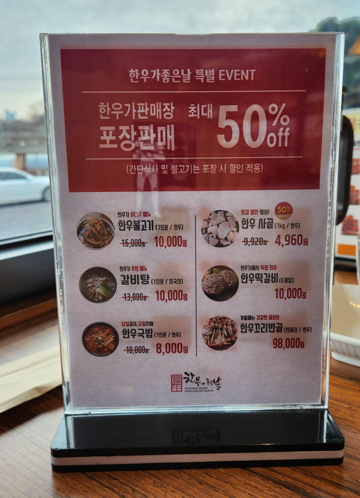 고기를 포장으로 가져갈때는 20% 세일된 가격으로 가져갈 수 있으니 그렇게 활용하면 또 좋다.