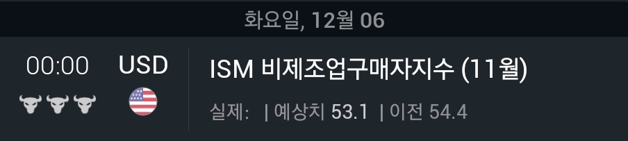 12/6(화) 00시 미국 ISM 비제조업고용지수 (11월)