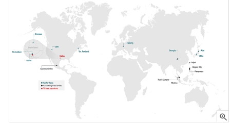 아래는 전세계적를 거점으로 반도체 팹을 운영하고 있는 나라의 지도 표기이다.
