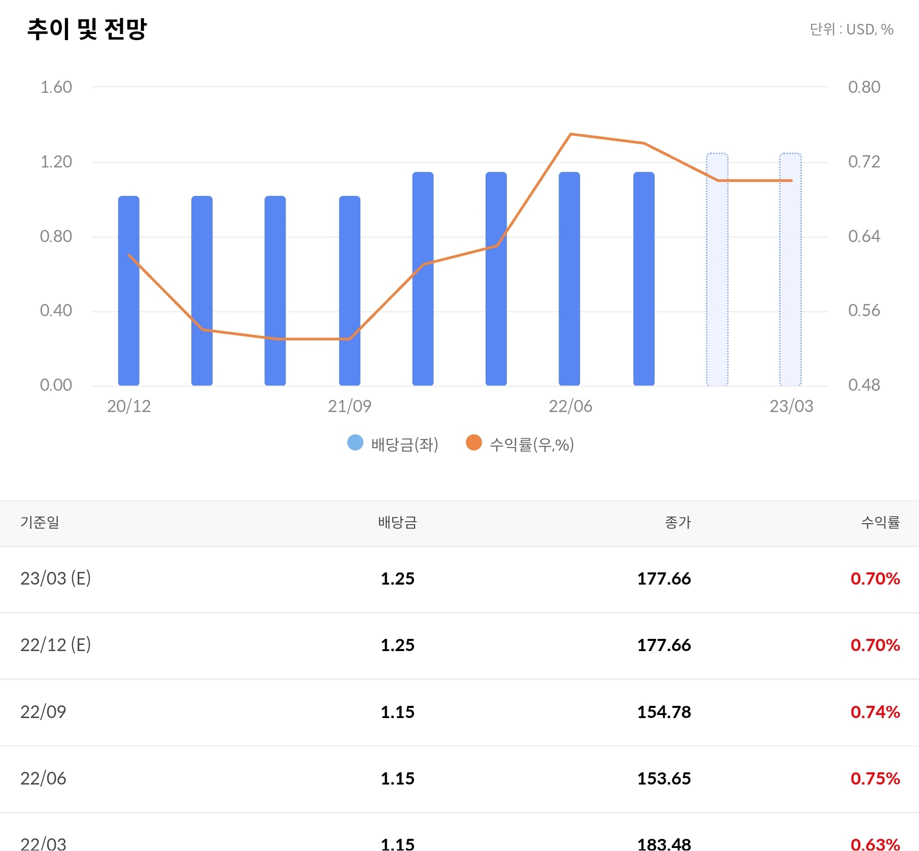 배당금 : 분기별 1.25달러
