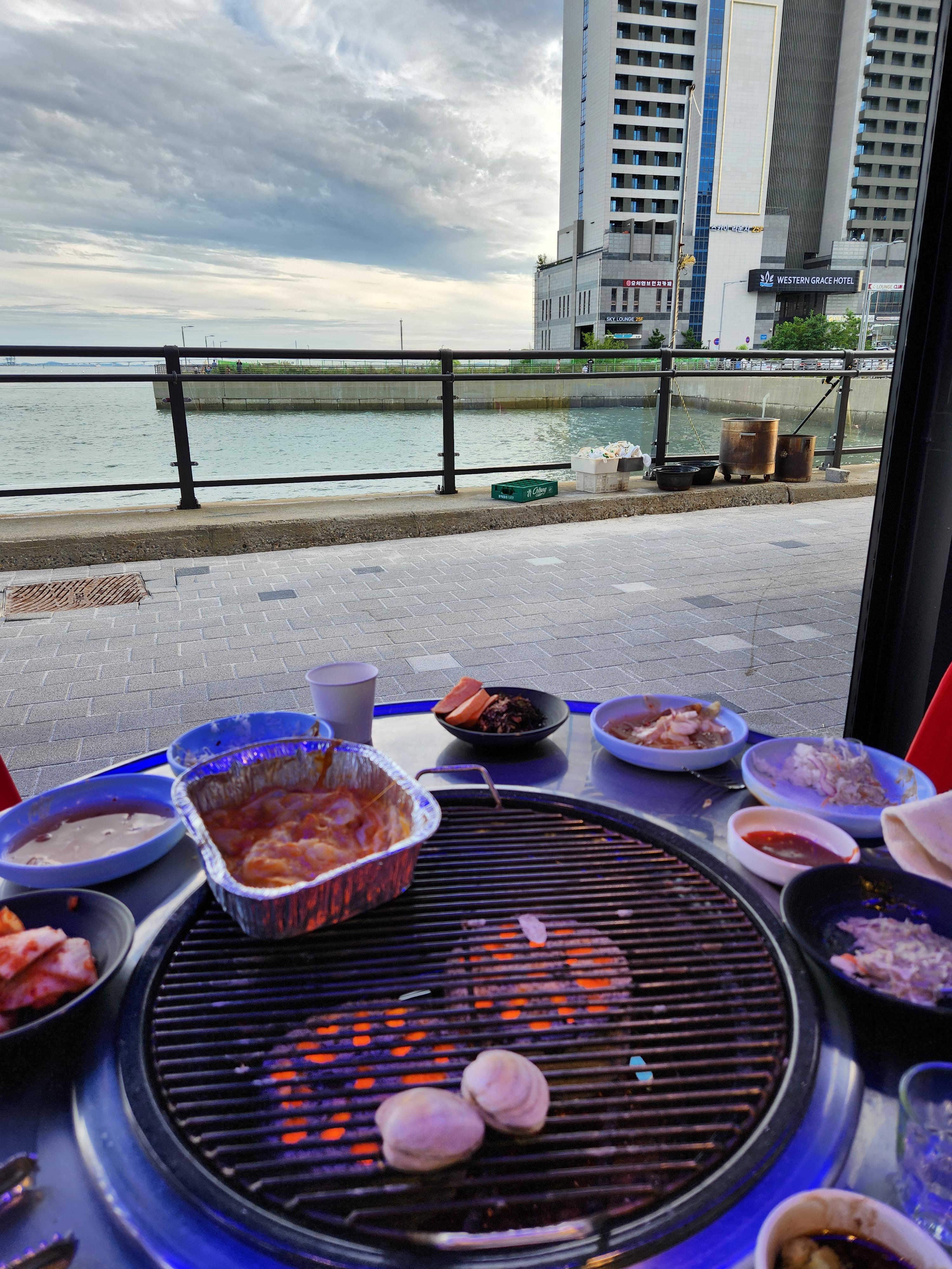 저녁에는 영종도 끝자락에 있는 숙소 근처에서 우리는 조개구이와 술한잔 👍