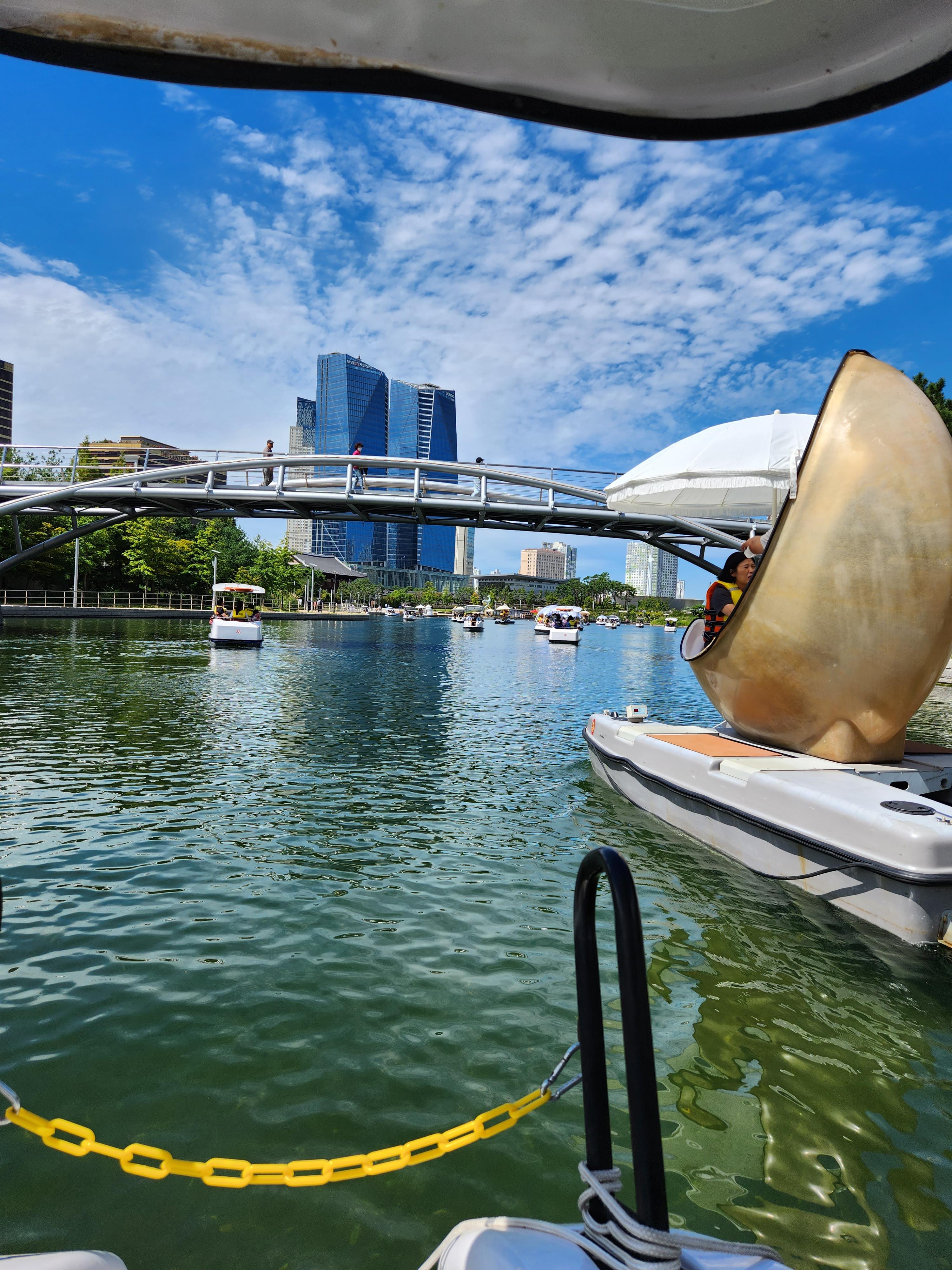 운전은 6살 아이들도 할 수 있을만큼 쉽고 속력은 느려서 같이하면서 여유롭게 물에 떠 사진찍으며 보낼 수 있음, 충전식 전기 베터리로 가는 거라 25분쯤 지나면 복귀 하라는 멜로디가 보트에서 울리게 됨, 듣기 싫으신분은 여유롭게 복귀하시면 됨 🤣