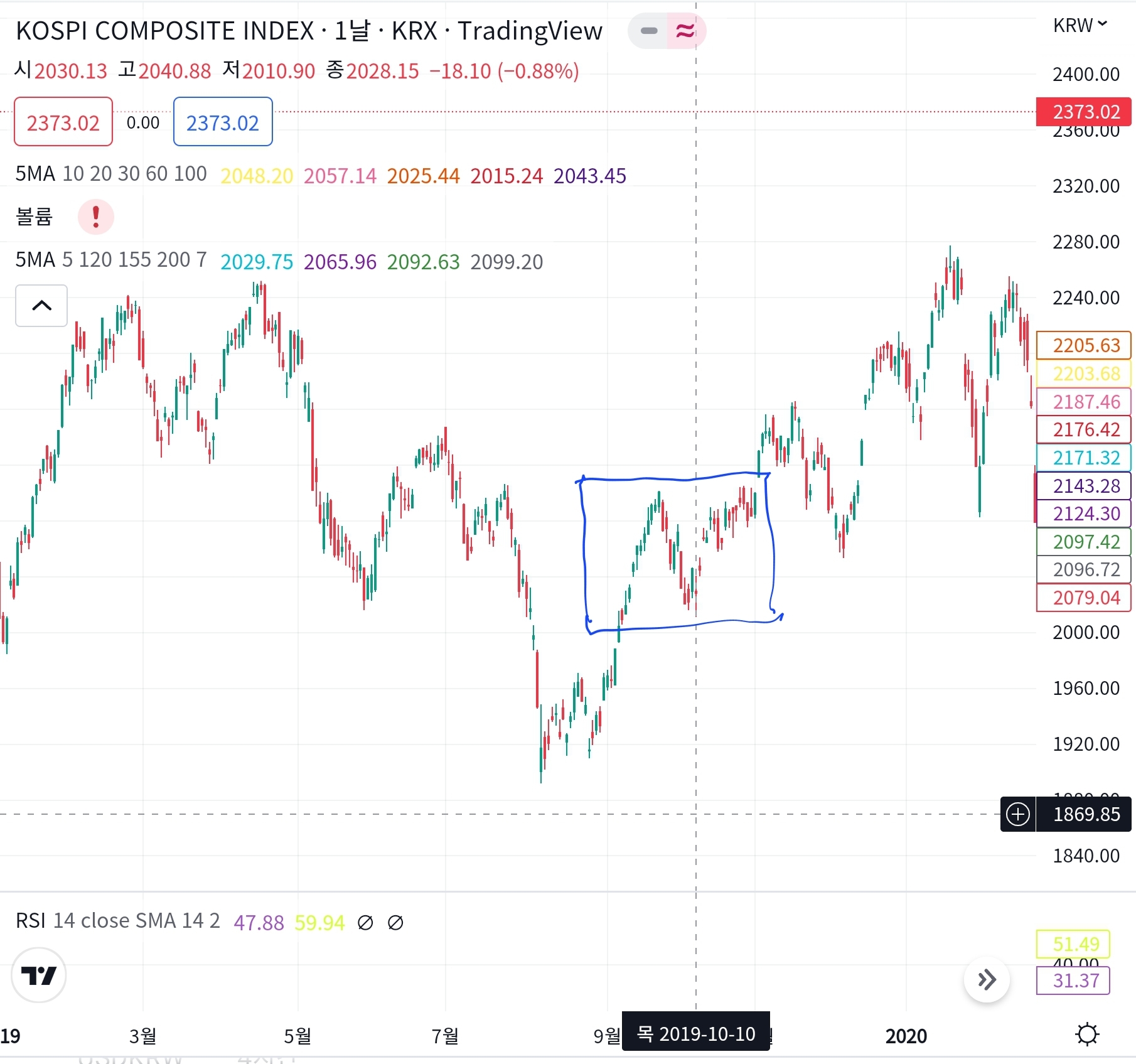 차트상으로는 만약 현재 위치에서 더 빠지지 않는다면 19년 10월 정도의 위치랑 비슷해 보이긴 한다.