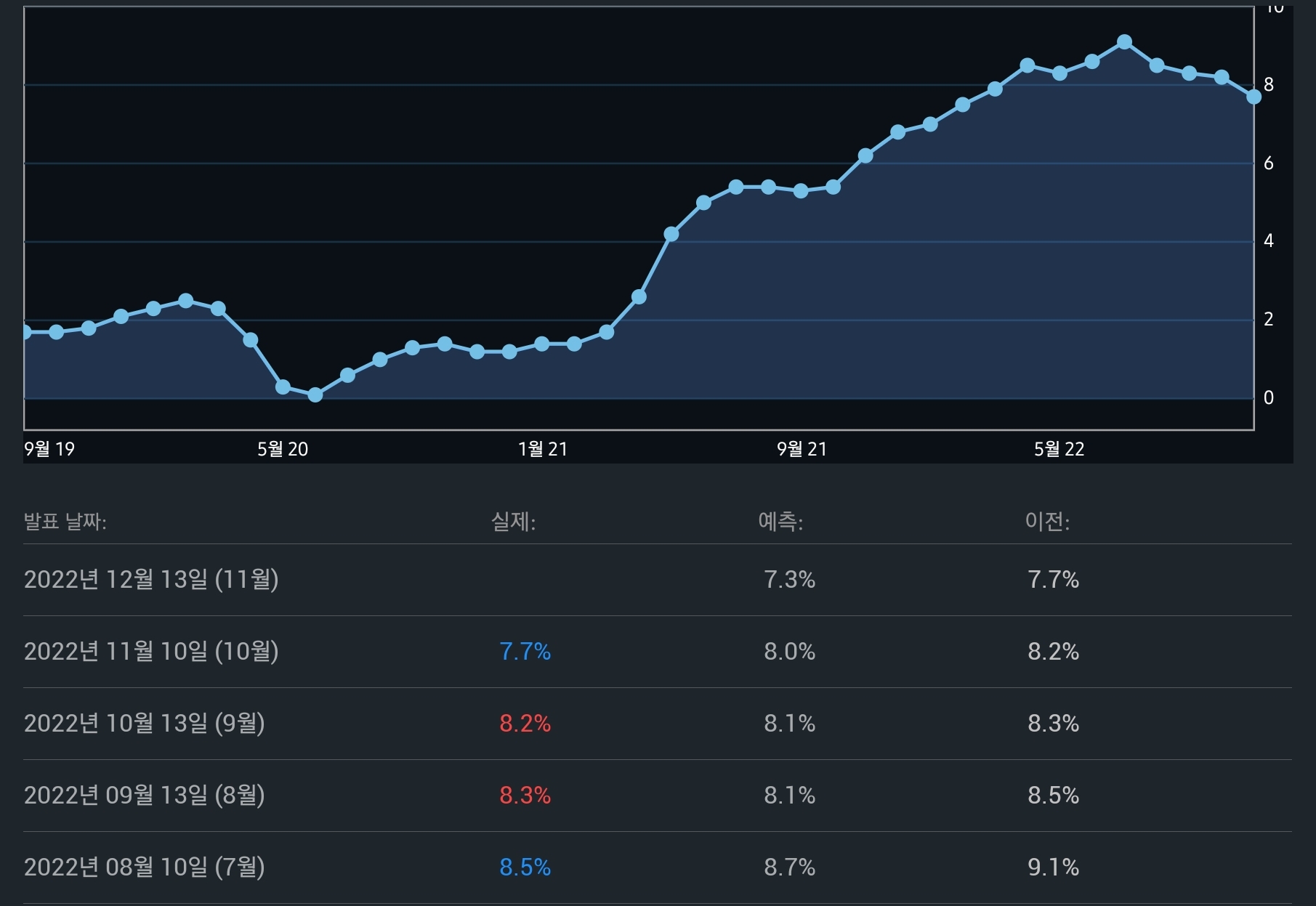 12월 13일(화) 22:30 미국 소비자물가지수(CPI) 발표