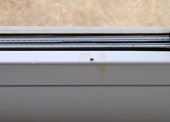 겨울이 되니 창 밖과 안의 온도 차이가 클때 블라인드 의 강력한 방온 효과로 인해 성애가 많이 맺힌곳에 물이 떨어지면서 블라인드 고정하는 철체에 녹이 슬었다.