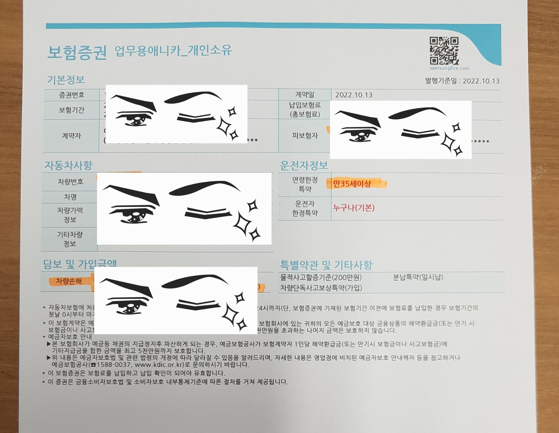 아래와 같이 내 명의의 보험증권이 발행