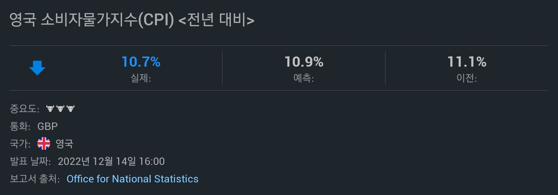 영국 소비자 물가지수 또한 낮시간에 발표가 되었는데 예상치보다 살짝 낮게 나오며 시장에 좀 더 기대감을 주지 않을까 한다.