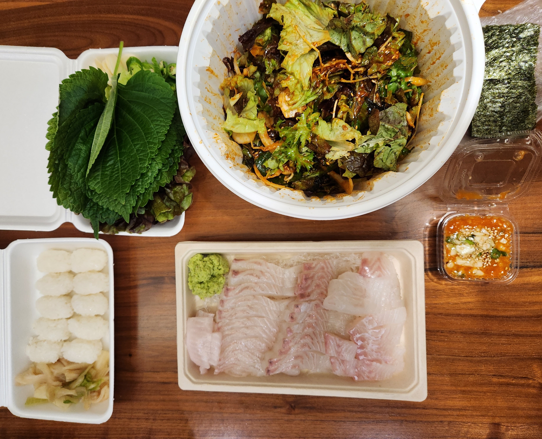 배달 어플로 포장주문을 해서 먹었는데 집에서 먹었는데도 양도 너무 넉넉하고 야채와 광어도 싱싱했다.