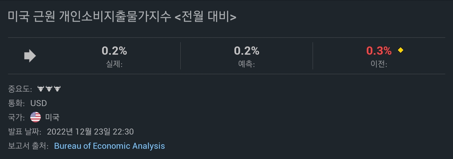 금요일 미국근원개인소비지출물가지수 발표가 있었고 예상치 보합수준으로 나왔다.