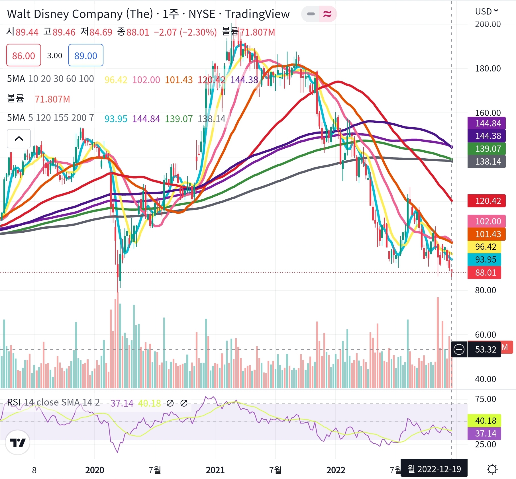 하반기와 상반기 최근 미디어쪽 강세를 보이고 있는데 현재 아바타2의 초기 흥행은 실패로 디즈니 주가는 빠졌지만 현재위치에서는 다시 반등할 수 있어 보이는데 좋은 기회가 될 수 있을 것 같다.