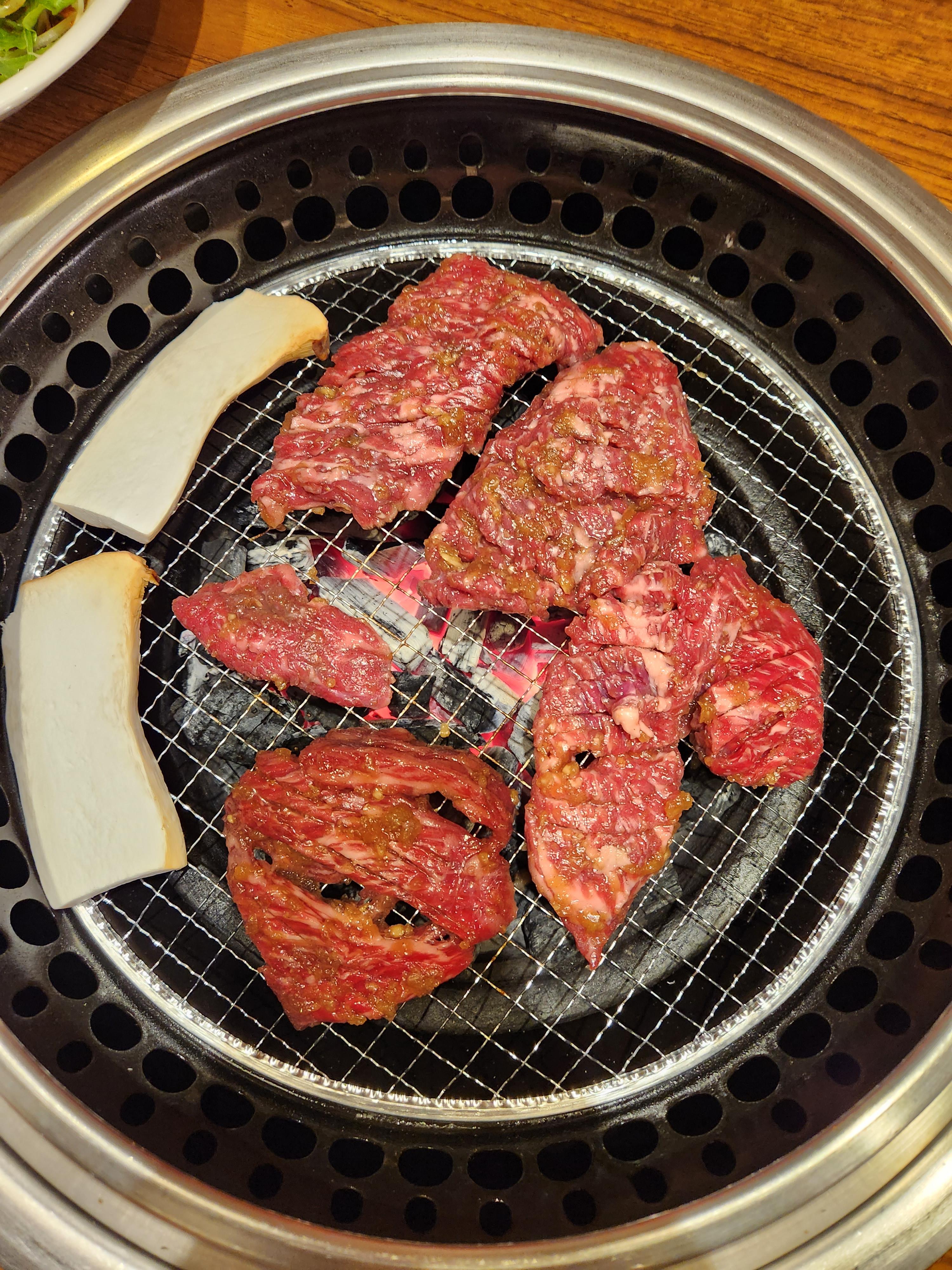 한우를 갈비살이나 안창살등을 주로 생고기로 구워서 잘 먹곤 하는데 이번에는 한우를 양념을 해서 나온 고기를 구워먹는 한우양념구이를 먹어보았다.