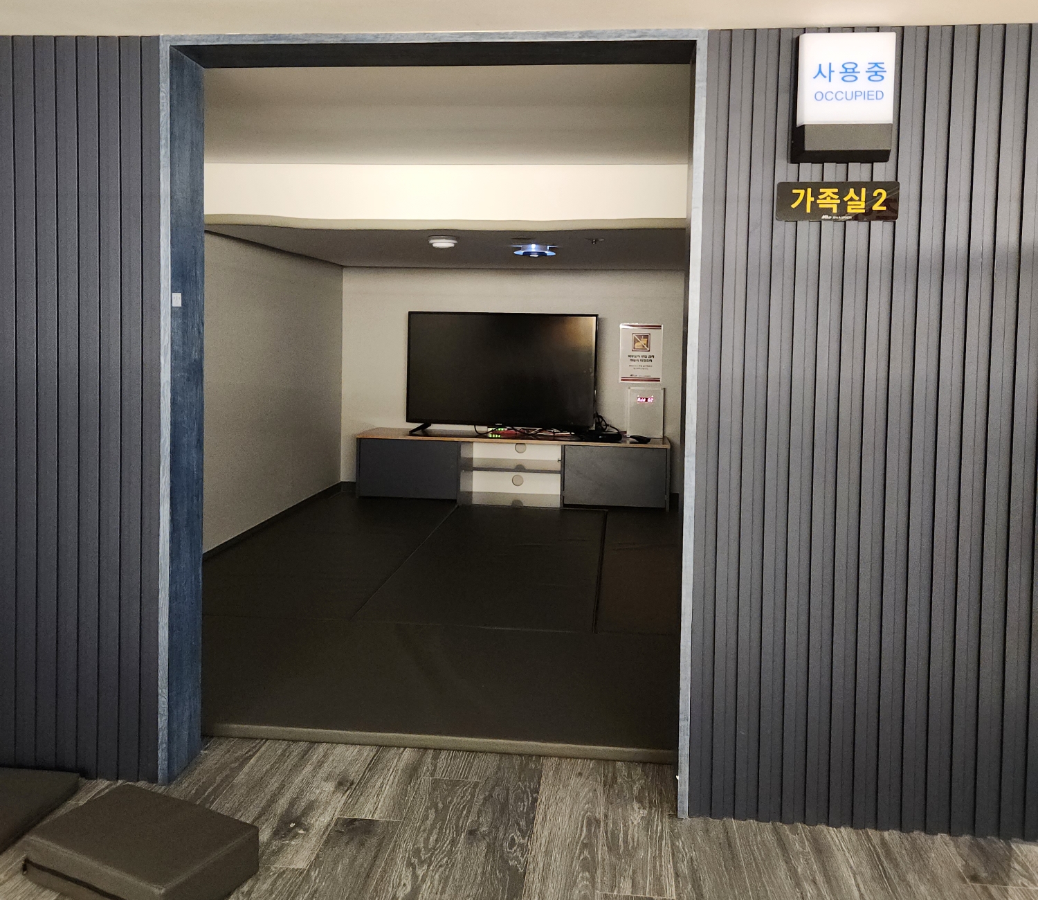 찜질방 가운데 계단으로 올라가면 매트리스가 쫙 펼쳐져 있는데 책이나 영상을 보거나 단체로 누워서 쉴 수 있게 마련해둔 것 같다. 식당 위쪽에는 가족 방이라고 해서 3,4개 정도 별도 금액으로 예약해서 사용하는 방도 있었다. 안에 컴퓨터와 모니터 정도가 있는데 유료라서 크게 사용하는 사람은 없었다.