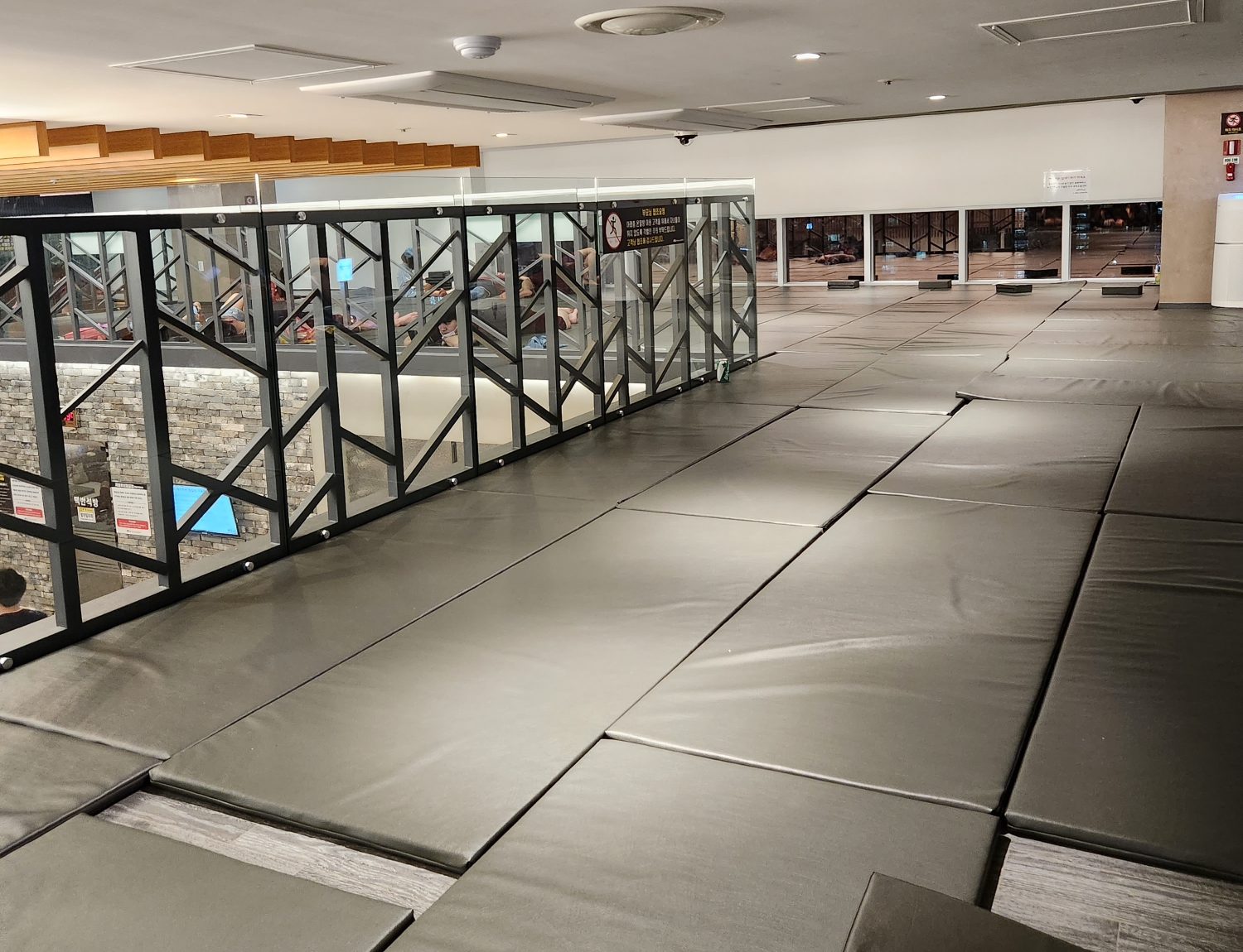 찜질방 가운데 계단으로 올라가면 매트리스가 쫙 펼쳐져 있는데 책이나 영상을 보거나 단체로 누워서 쉴 수 있게 마련해둔 것 같다. 식당 위쪽에는 가족 방이라고 해서 3,4개 정도 별도 금액으로 예약해서 사용하는 방도 있었다. 안에 컴퓨터와 모니터 정도가 있는데 유료라서 크게 사용하는 사람은 없었다.