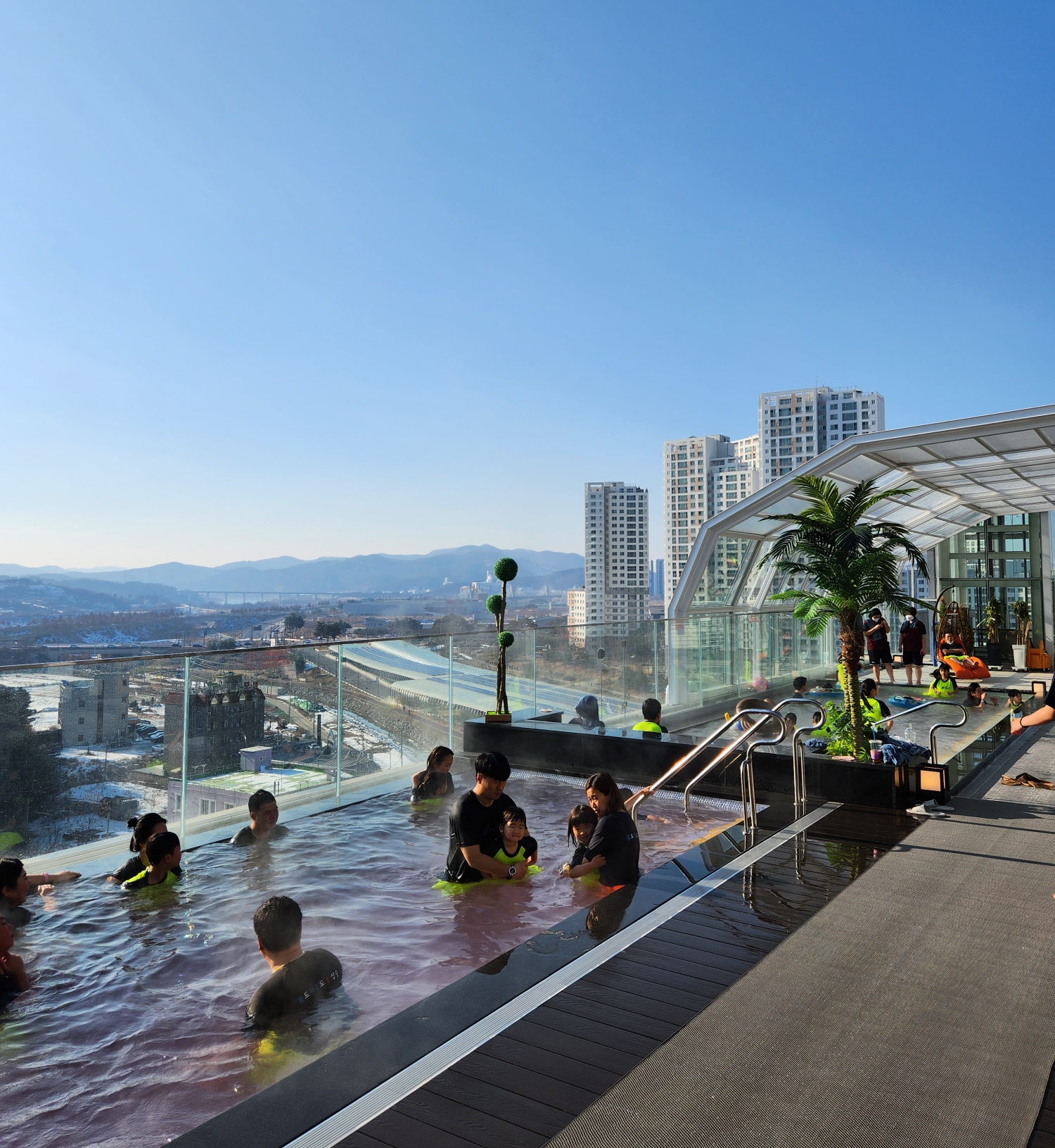 9층에 올라가면 야외에 보이는 2군데의 풀이 있고, 실내에는 어른 무릎까지만 오는 실내 풀이 있다.