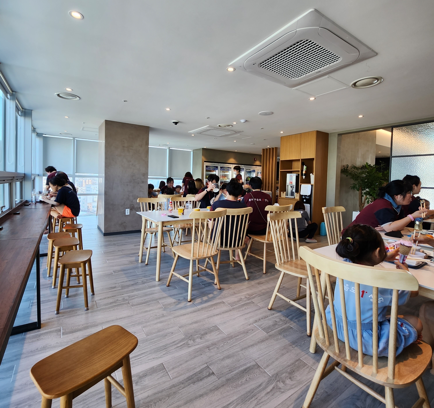 8층은 식당내부이기에 마스크를 쓰고, 9층은 외부로 마스크는 프리하다.