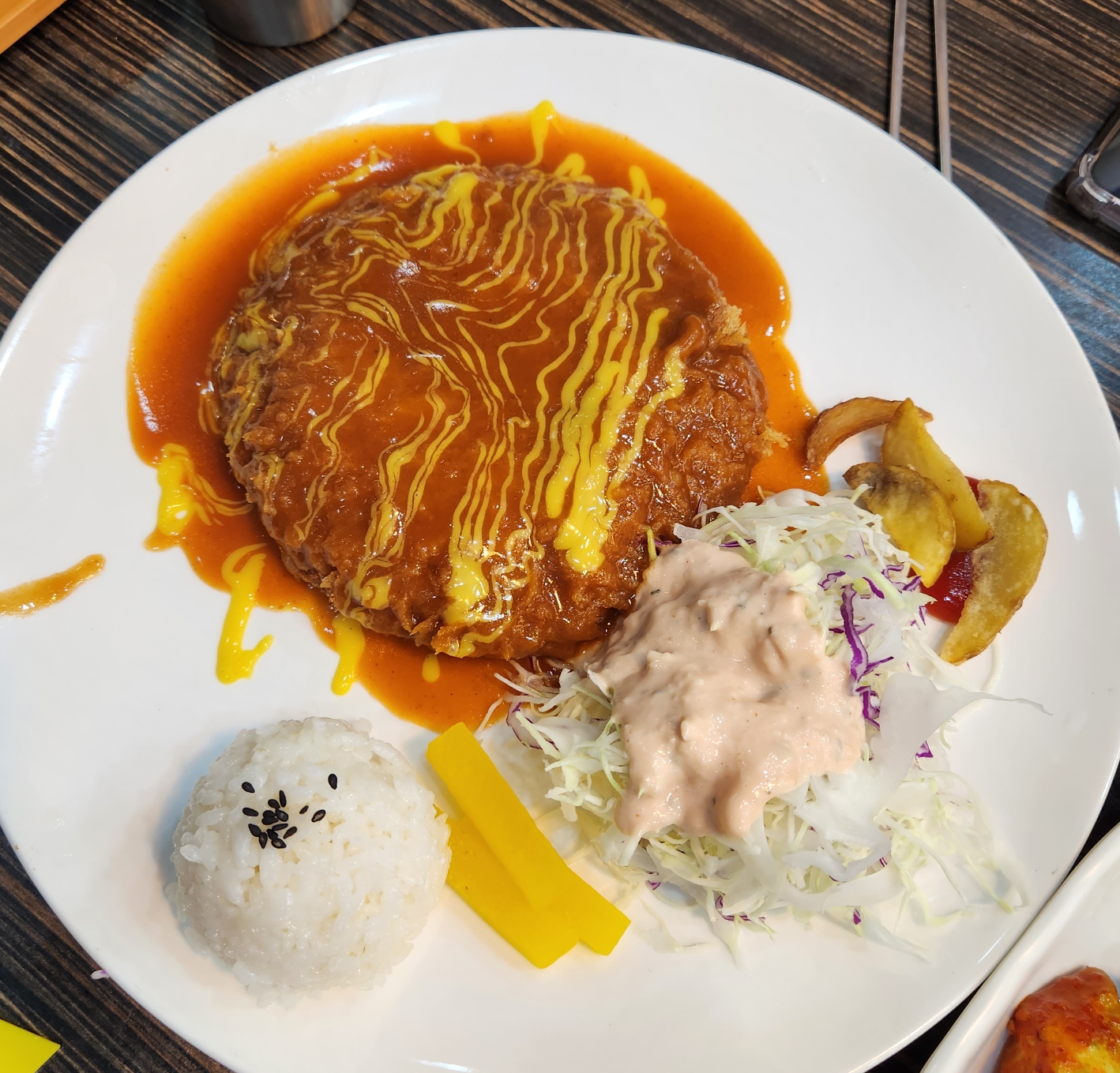 돈까스는 한개를 시켜 아이둘이 먹기에도 충분한 양이였고, 가격은 동일한데 치즈 돈까스를 선택할 수 있고 고구마 맛이나 단호박맛 무스가 들어간 걸로 선택해서 취향대로 골라 주문하면 된다.