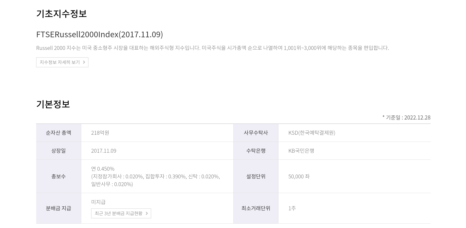 러셀에 투자하는 국내 ETF 는 KODEX에서 운용하는 KODEX 미국러셀 2000 ETF(H) 가 있다.