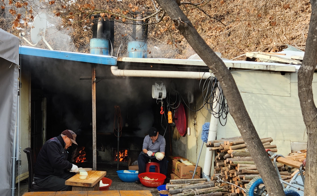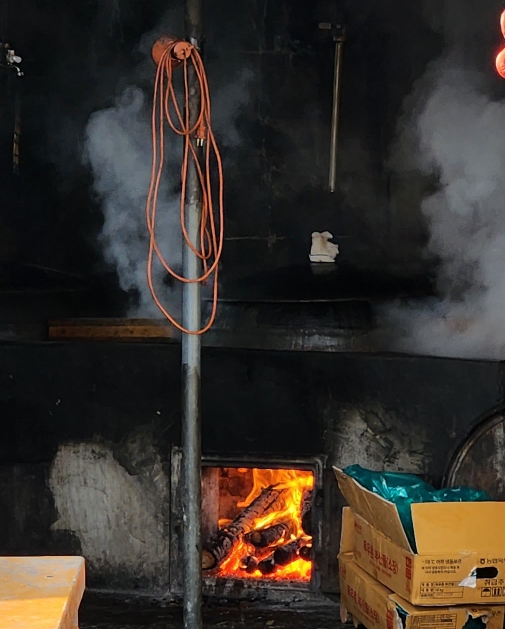 날씨가 추운날이면 오늘 같이 입구 옆에 가마솥에서 요리를 위해 손질을 하고 계시는 가게 제목처럼 할아버지, 어르신들이 일을 하고 계신다. 😅