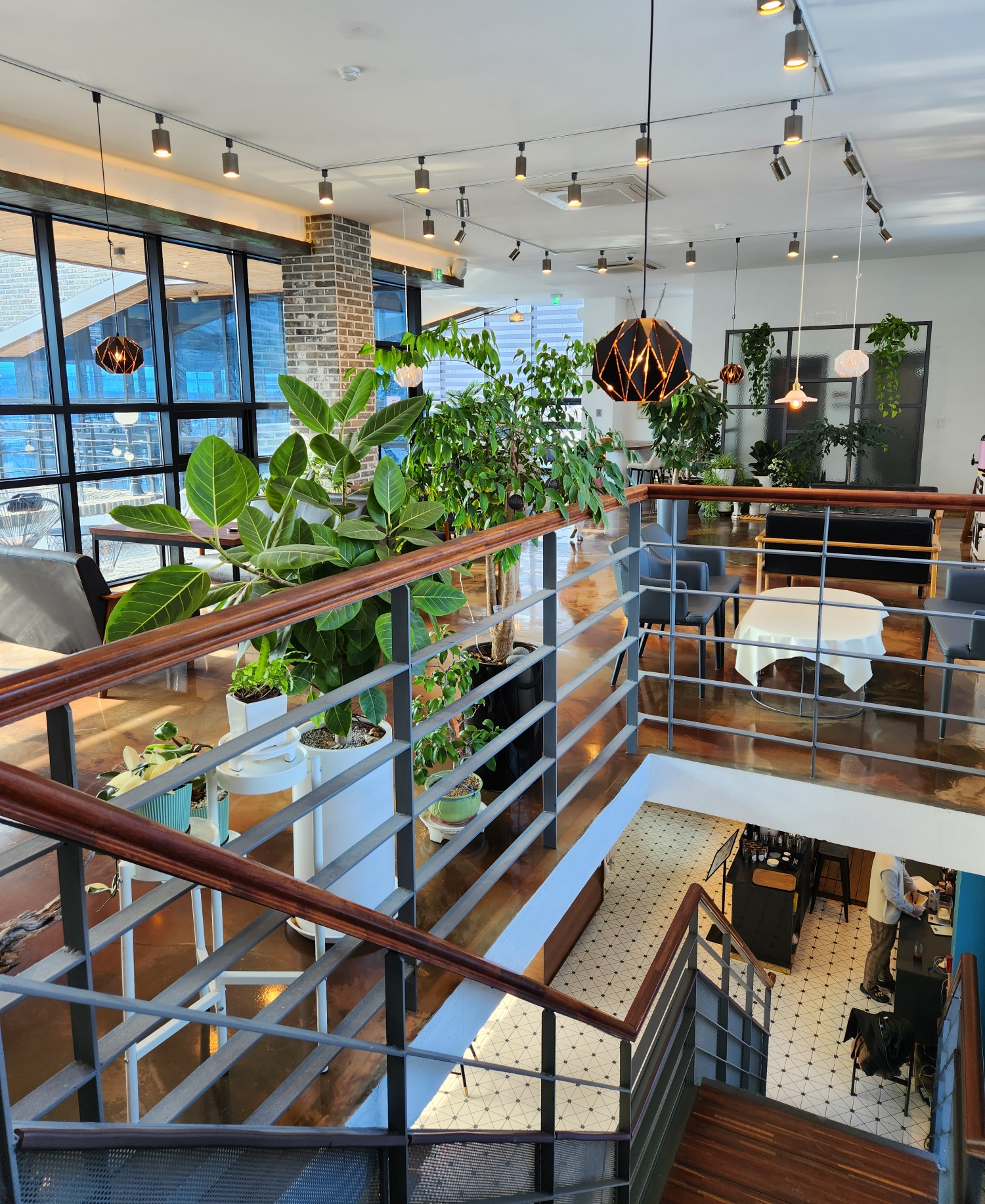 건물이 큰 만큼 안에 좌석도 넉넉한 편이고 우리는 2층을 이용했지만, 날이 좋을때는 1층 야외 테라스도 분위기는 좋을 것 같았다. 지금은 눈이와서 아직도 녹지 않고 있지만, 2층에도 야외 테라스가 있어 이용 가능하다.